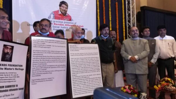 Today at the occasion of the 51st anniversary of the Osho Neo Sannyas Movement, the followers of Acharya Rajneesh and Lord Osho have placed several issues in front of Union Minister of State Ramdas Athavale. Various topics ranging from malpractices taking place in the Osho Ashram as well as financial scams were highlighted in front of Ramdas Athavale to draw his attention to the fact that crores of rupees of revenue to the state and central government are being squandered by Osho Ashram and have been used by international/foreign business profiles.