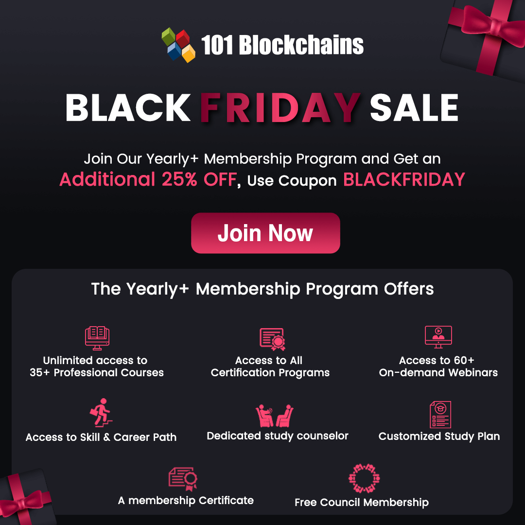 The Black Friday Sale on 101 Blockchains could solve such problems by enabling hefty discounts on their certifications and membership program. In a way, 101 Blockchains has honored its vision and commitment to learners with its Black Friday Sale offers.