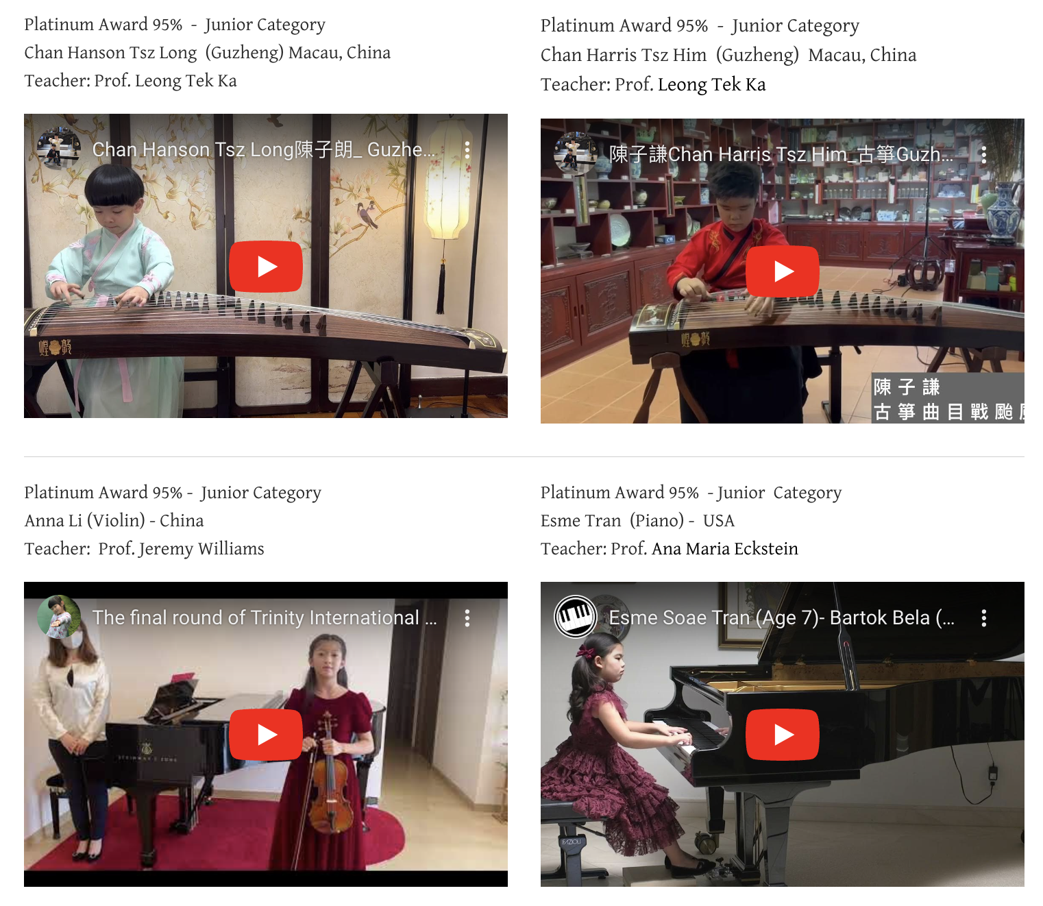 95% Platinum Award - Chan Harris Tsz Him Junior Performance (Solo) Guzheng - Macau, China