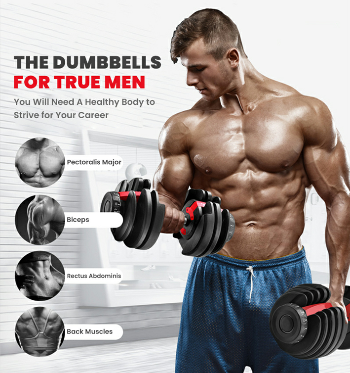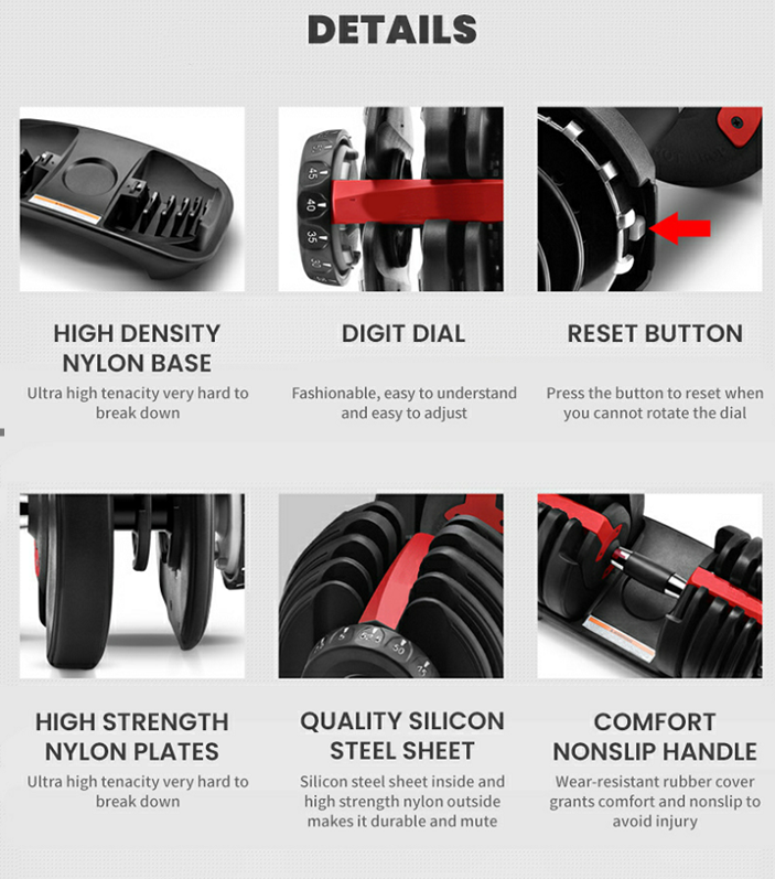 Scientific group interval time can effectively stimulate the target muscles. We can greatly reduce the time for weight adjustment and ensure the efficiency of group gaps. We can use different weights to exercise for different parts, without reassembling cumbersome dumbbells and achieve whole-body muscle training.