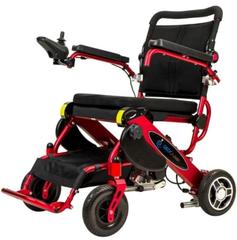 The Geo Cruiser LX is another lightweight foldable electric wheelchair that comes in your choice of red or blue, is approved for cruise or airline travel, and weighs just 53 lbs once the 6 lbs battery pack is removed.