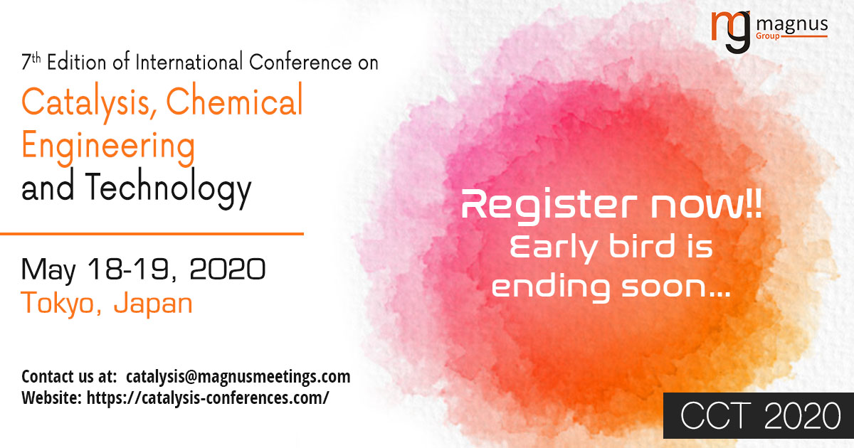 Tokyo, Japan Jan 10, 2020 (Issuewire.com) - It is our pleasure to invite you to take part in the 7th Edition of International Conference on Catalysis, Chemical Engineering and Technology (CCT 2020) which will take place at Tokyo, Japan over Monday 18 – Tuesday 19 May 2020 and organized by Magnus Group. The meeting will offer an opportunity for catalytic scientists and engineers from all over the world’s academic and industrial communities to cooperate and network over the whole spectrum of Catalysis. The scientific program will be organized around the following all aspects of catalysis: Catalysis for Renewable Sources, Catalysis in Nanotechnology, Photochemistry, Photobiology and Electrochemistry, Micro-emulsion Catalysis and Catalytic Cracking, Industrial Catalysis and Process Engineering, Catalysis for Biorefineries, Advanced synthesis, Catalytic systems, and new catalyst designing, Integrated Catalysis, Green Chemistry, Heterogeneous catalysis, Reaction Chemistry, and Engineering, Petrochemical Engineering, Nuclear Chemistry/Radiochemistry, Enantioselective catalysis, and Computational Catalysis and Fluid Mechanics.