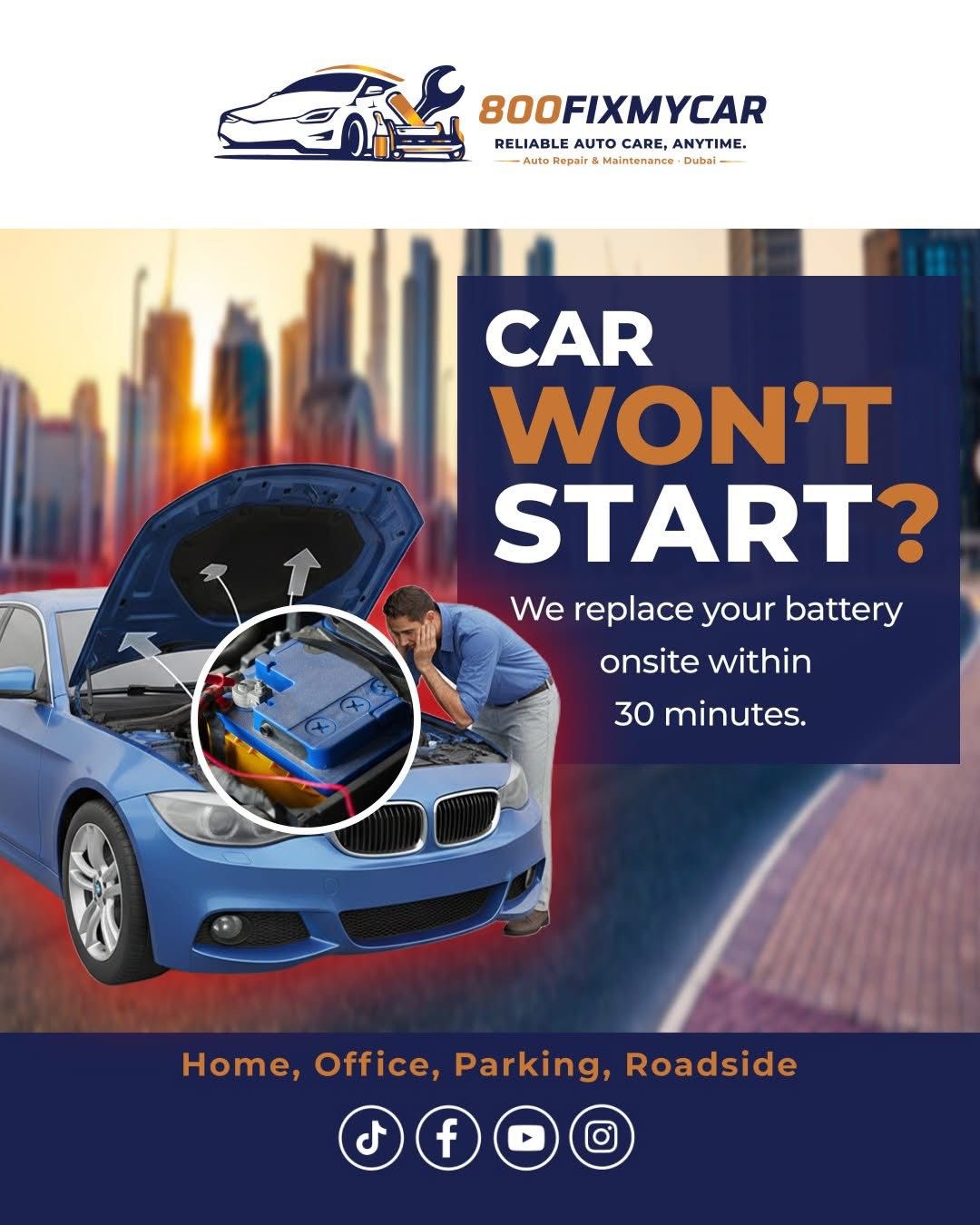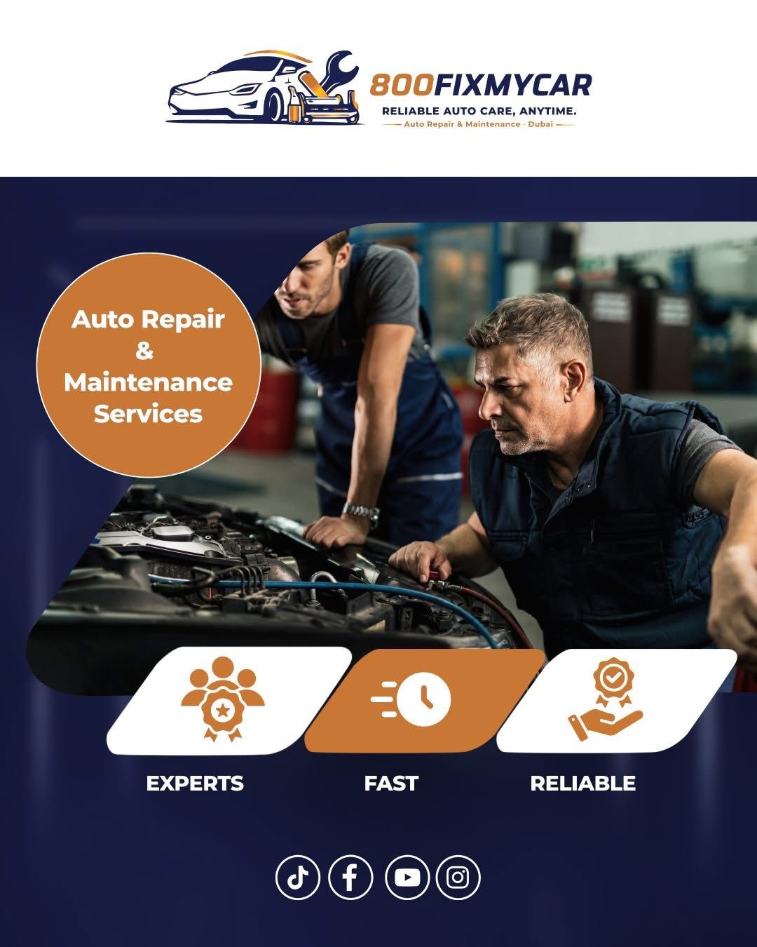 800fixmycar is a UAE-based automotive service provider offering professional car repair, vehicle maintenance, and roadside assistance services. The company is dedicated to providing convenient, reliable, and customer-focused automotive solutions for individuals and businesses across the UAE.