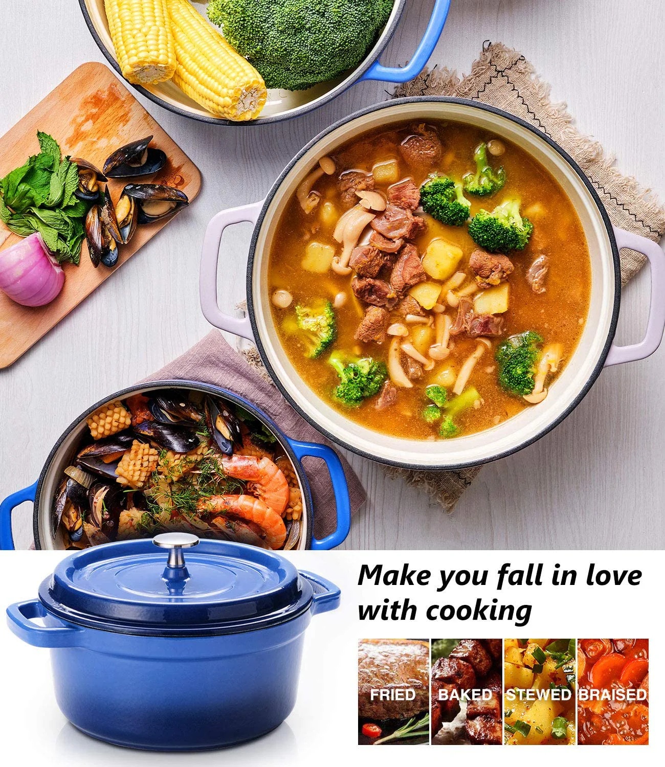 The allure of cast iron cookware lies in its ability to deliver unparalleled heat retention and distribution, and the Cast Iron Skillets Set with Glass Lids exemplifies this timeless appeal. Pre-seasoned for immediate use and equipped with silicone handle grips for added safety and comfort, these skillets are perfect for indoor cooking, outdoor grilling, stovetop searing, and even campfire cuisine. The inclusion of glass lids further enhances their functionality, allowing for controlled cooking and easy monitoring of dishes. Whether you're searing steaks or baking cornbread, these skillets elevate your cooking experience to new heights.