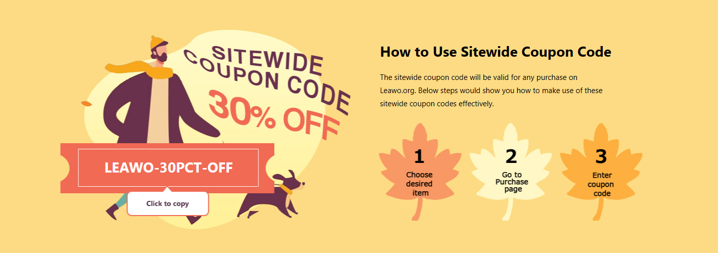 - 30% off code on buying singles in Leawo Prof. DRM. The sitewide coupon code will be valid for any purchase on Leawo.org including singles in Leawo Prof. DRM. People are free to get this coupon code without any additional fees.
