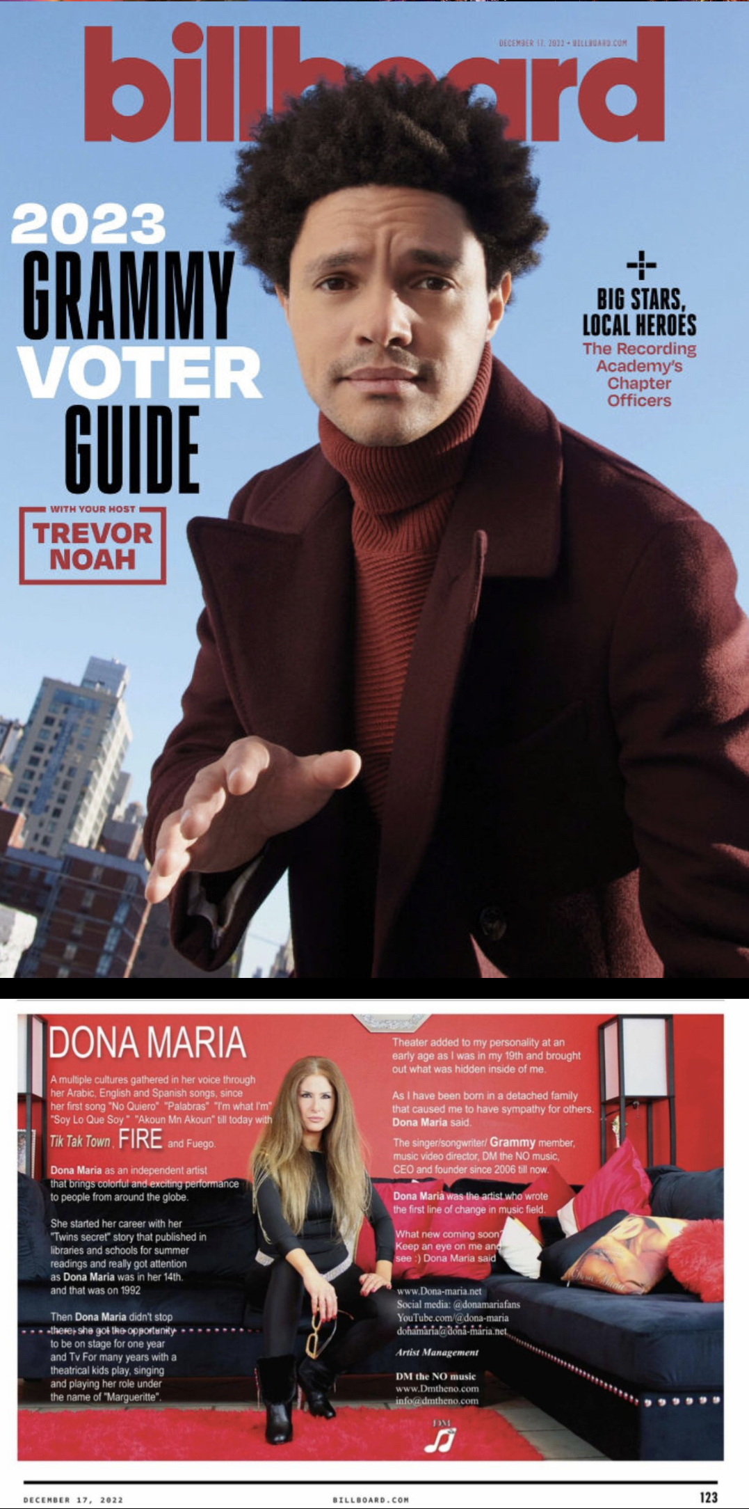 Brea, California Dec 19, 2022 (Issuewire.com) - Dona Maria, a name that gathered multiple cultures since her first release till now; her latest releases “Fire” and “Tik Tak Town” are getting recognition as they were in the Grammy 65 1st voting cycle of 2021-2022-2023 and have recently been featured in the Billboard magazine December 17 issue as well as been featured at the NY time square, California shopping malls and others and are making a viral impact accumulating over 1.7 million Streams on Spotify and 476k listeners in just 5 days after their official release date.