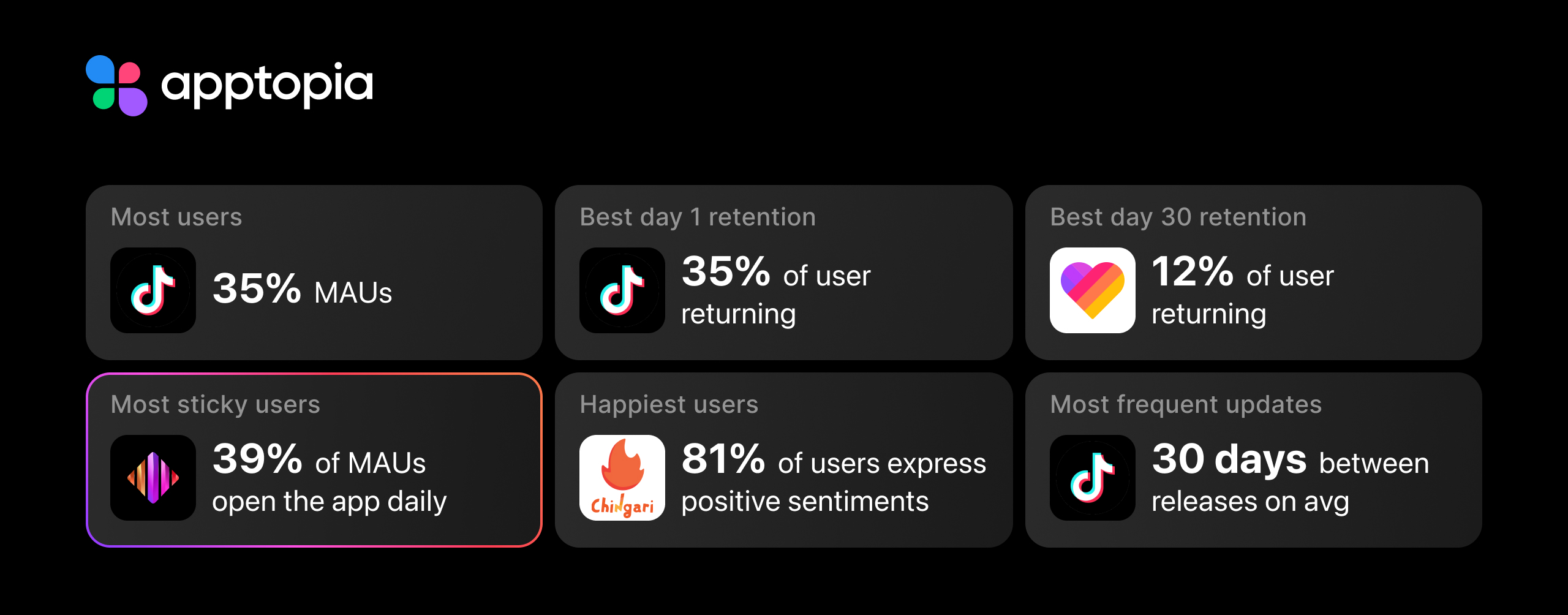 Lit.it has already beat TikTok in the “time on app” metric in a few countries and ranked on AppTopia as the #1 most “User sticky App”.