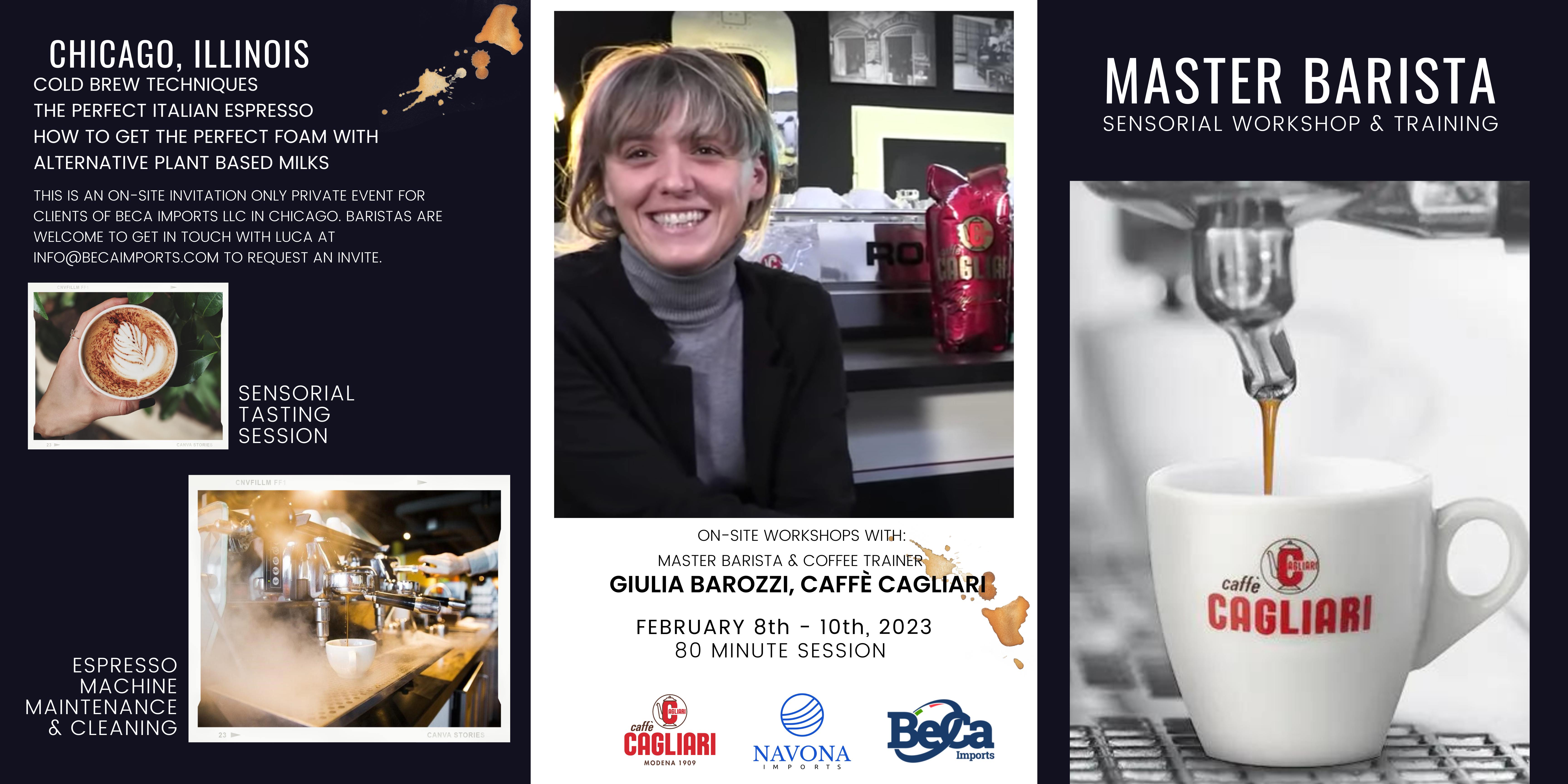 Chicago, Illinois Feb 3, 2023 (Issuewire.com) - This an exclusive occasion for Chicago baristas that are serious about extracting the perfect Italian espresso. From February 8th to 10th learn from expert Master Barista, Giulia Barozzi, the official Coffee Trainer for historic Italian espresso roaster Caffè Cagliari, founded in 1909 in Modena, Italy.