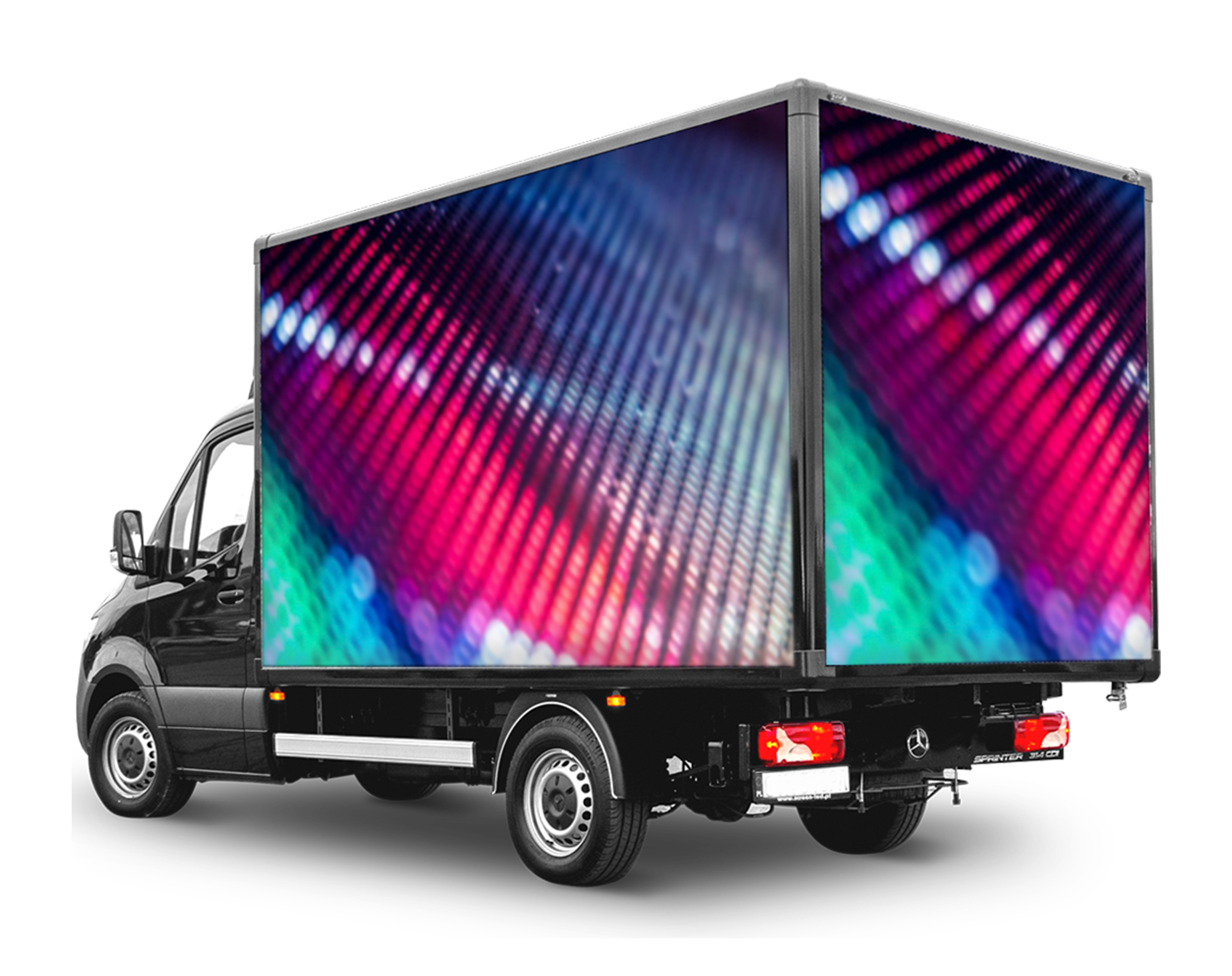 The system is adaptable to the needs of today’s fast-changing advertising landscape. Its modular design allows for use as a stand-alone unit, attachment to a trailer, or integration into mobile advertising vehicles.