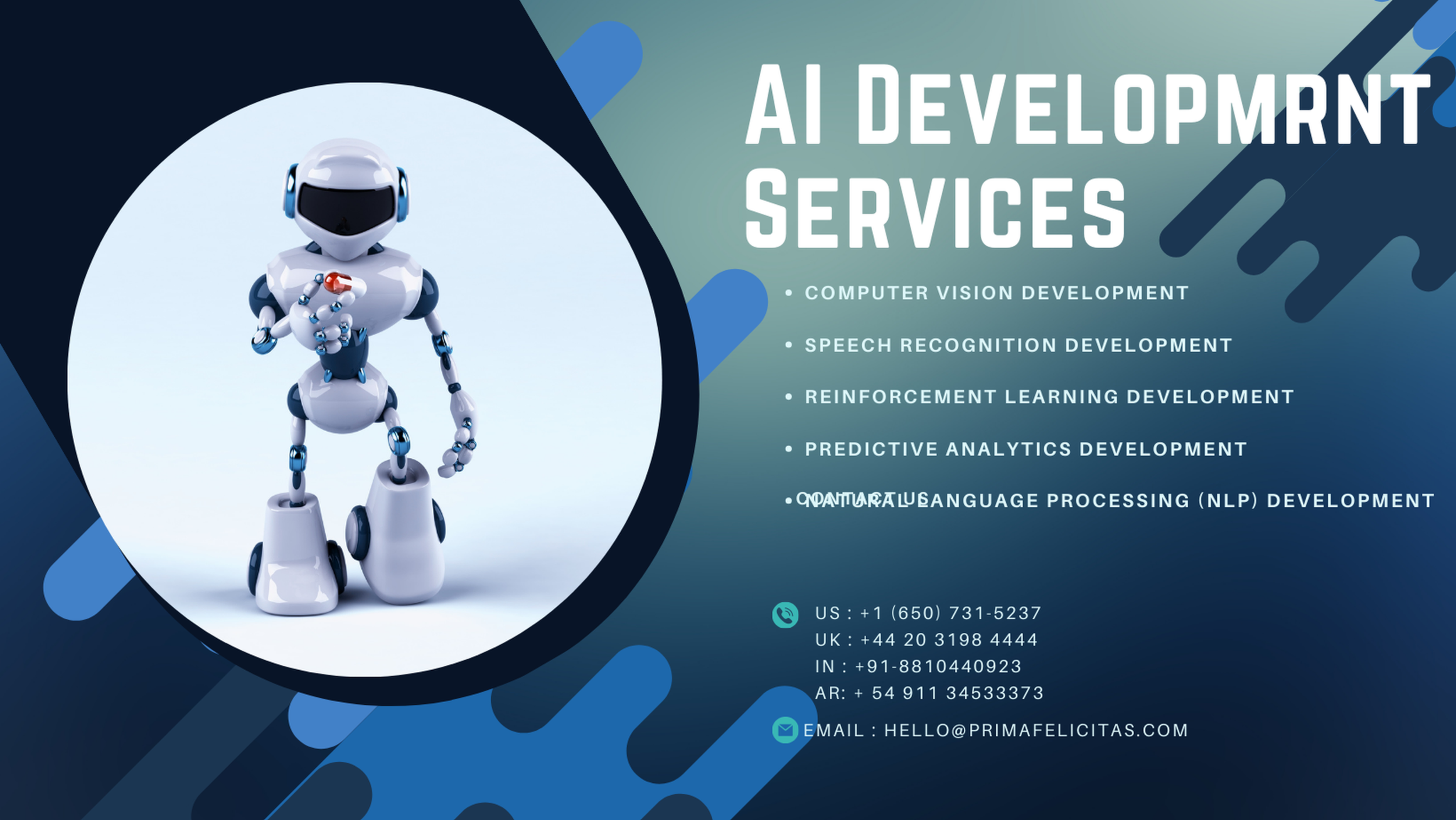 South San Francisco, California Jul 16, 2025 (Issuewire.com) - In today’s fast-paced digital age, Artificial Intelligence (AI) is reshaping industries and transforming the way businesses operate. As companies seek to harness the power of AI to gain a competitive edge, the demand for innovative and customized AI solutions has never been greater. PrimaFelicitas, a leading technology consulting and development firm, offers end-to-end AI development services designed to help organizations unlock their full potential through intelligent automation, data-driven insights, and scalable solutions.