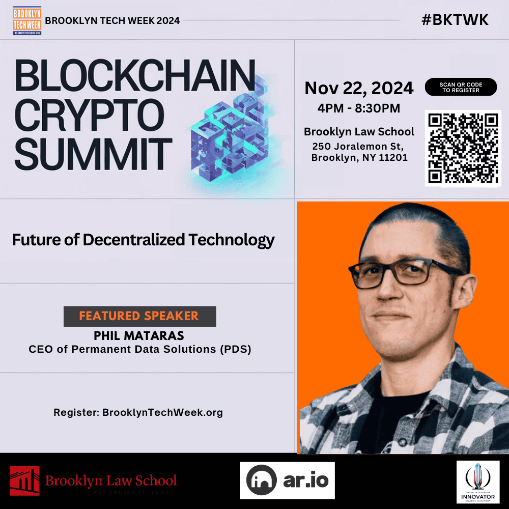 Permanent Data Solutions (PDS), led by Founder and CEO Phil Mataras is proud to sponsor BKTW 2024. PDS is at the forefront of innovation in Web3 infrastructure, leveraging the power of the permanent and decentralized web to offer products and services such as the AR.IO protocol, and ArDrive app, forging a censorship-resistant, accessible, and perpetual internet. With use cases in everything from AI to DePIN, PDS brings many solutions via blockchain.