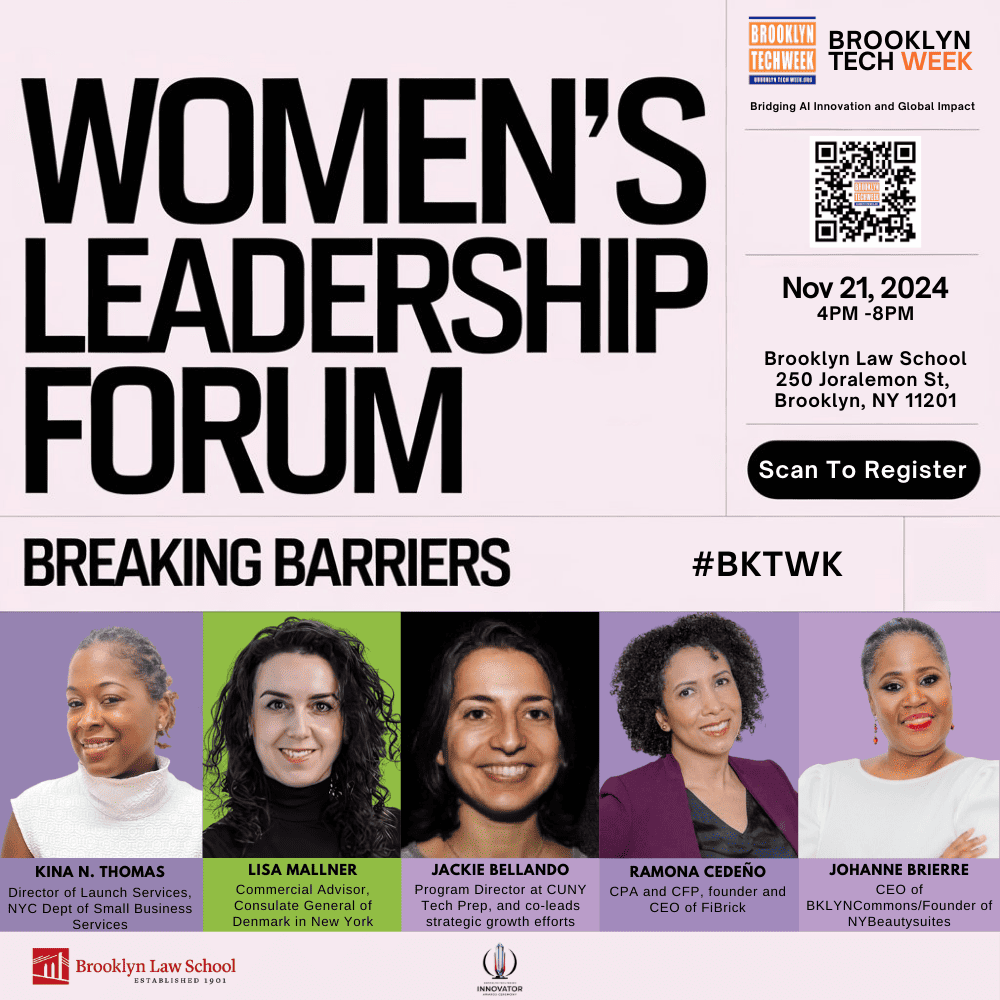 November 21st brings a dynamic Women’s Leadership Forum, showcasing top women leaders in technology, business, and innovation. Featured speakers include Lisa Mallner, Commercial Advisor at the Consulate General of Denmark in New York; Kina Thomas, Director of Business Programs at NYC Department of Small Business Services; Ramona Cedeño, founder and CEO of FiBrick; and