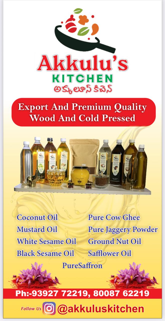 Hyderabad, Telangana May 31, 2025 (Issuewire.com) - Akkulu’s Kitchen, a rising star in the healthy food industry, is leading a wellness revolution from its home base in Kukatpally, Hyderabad, with a powerful blend of tradition, purity, and innovation. Specializing in cold-pressed and wood-pressed oils and natural daily essentials, the brand has earned a trusted reputation for delivering chemical-free, additive-free, and nutrient-rich products that reflect the age-old wisdom of natural living.