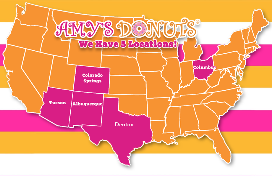 Fully functional in almost 5 locations (Albuquerque, Denton, Columbus, Colorado Springs, and Tucson). Amy’s Donuts is an independently controlled and managed donut shop. The professional team of bakers prides themselves in creating some exceedingly impressive and out-of-the-world donuts.