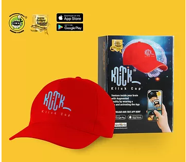 Klick-cap is the first phygital (physical+ digital) product. The cap allows the children to explore the world of the brain. One can navigate through the app into the brain and have a wow experience. The cap is smart and made of cotton. It is designed for 7+ ages.