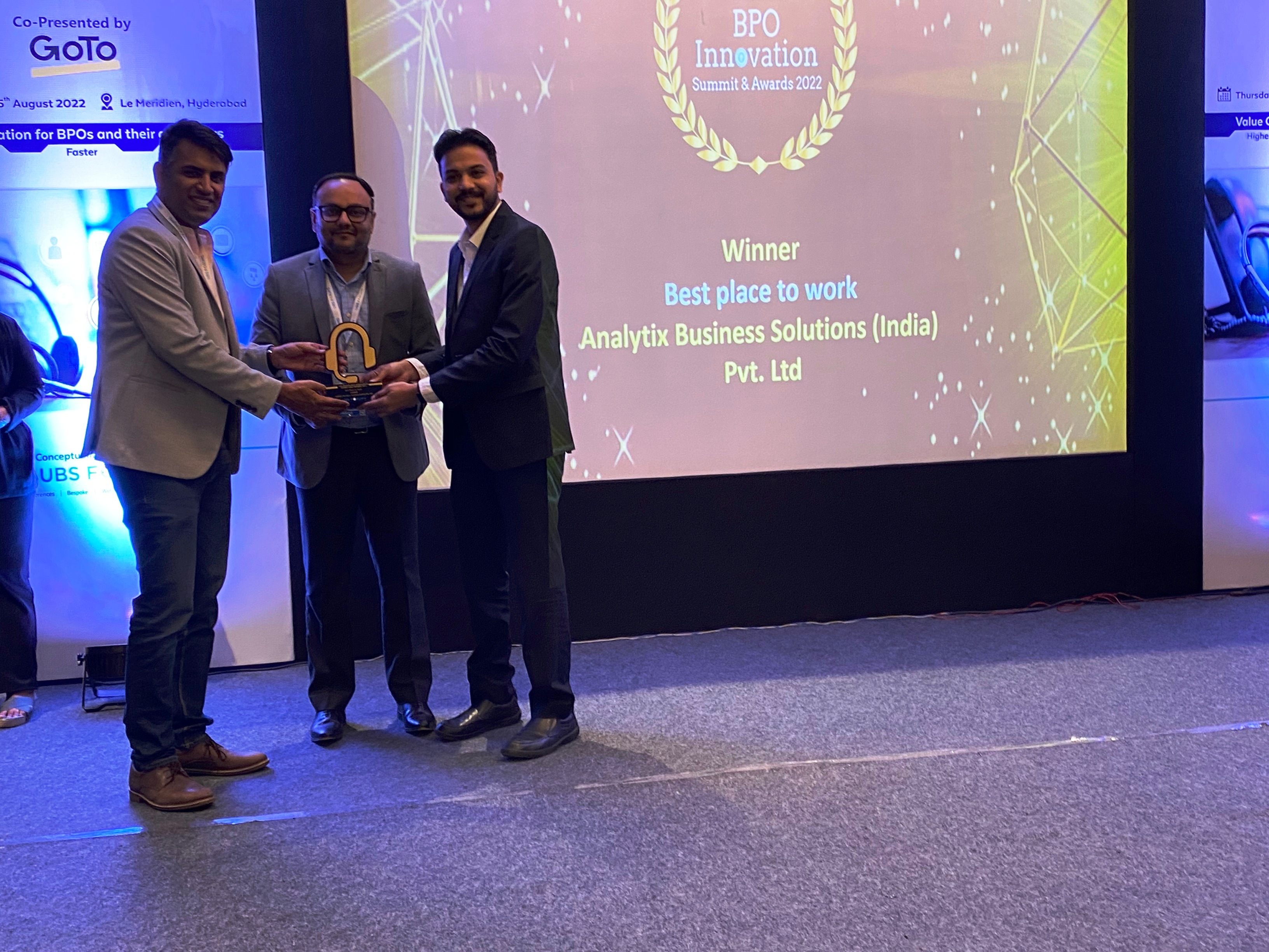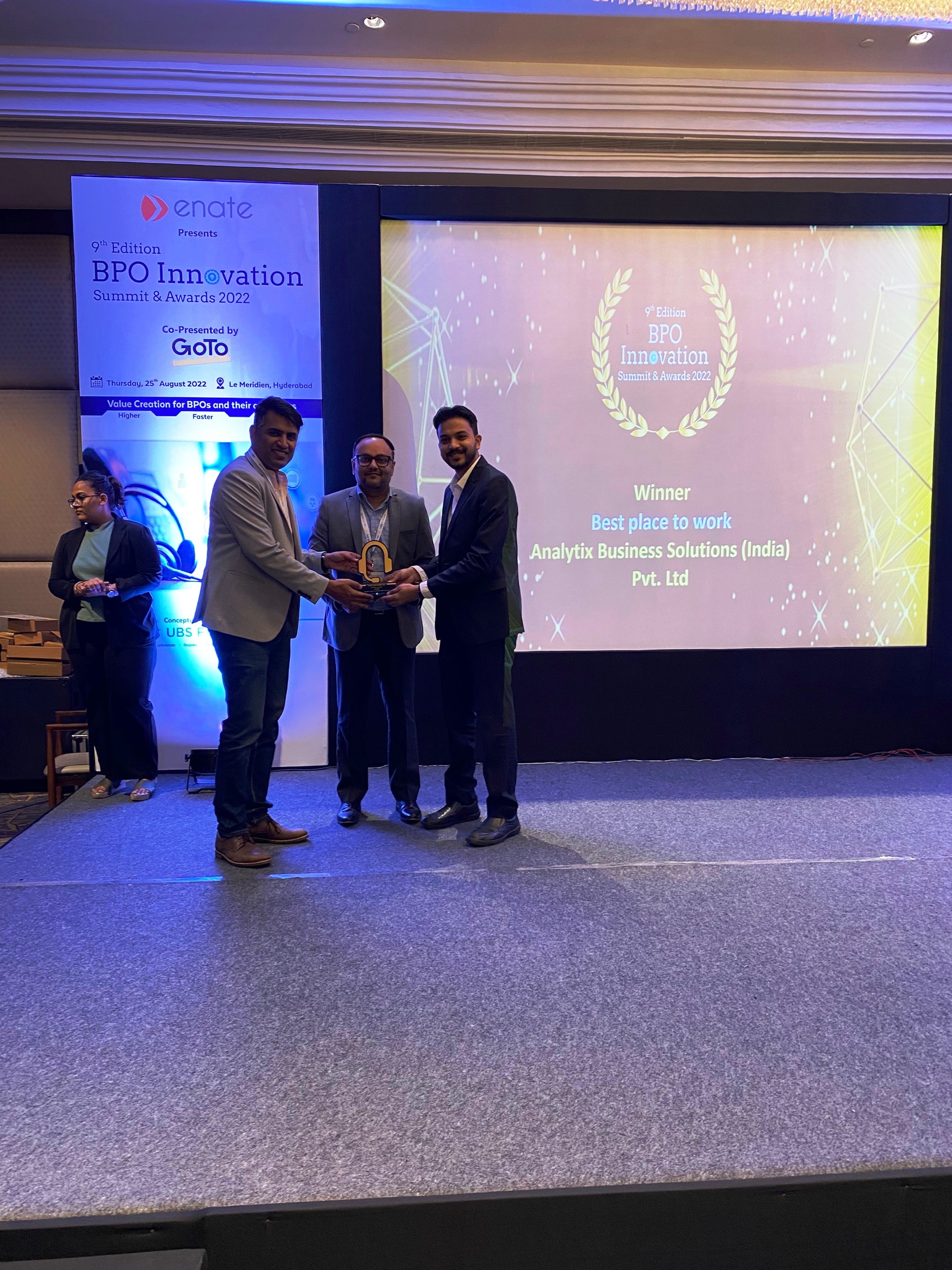 Analytix was also declared the winner of the ‘Best Place to Work’ award at the 9th edition of BPO Innovation Summit & Awards 2022 in Hyderabad. The award was accepted on behalf of Analytix by Allan Bell, Vice President -Data Management Services, and Jeet Doshi, GM- Business Development. These 9th Edition summits and awards aimed to throw light on how flexible outsourcing partners have been with their clients when conditions change rapidly and how far along the digital journey they have ventured. It discussed the rise of the Digital Workforce and reskilling them with Next-Gen Technology. Analytix submitted a case study with evidence for its various innovative strategies starting from its State-of-the-art infrastructure and High Potential Manager program to various pieces of training conducted for its employees.