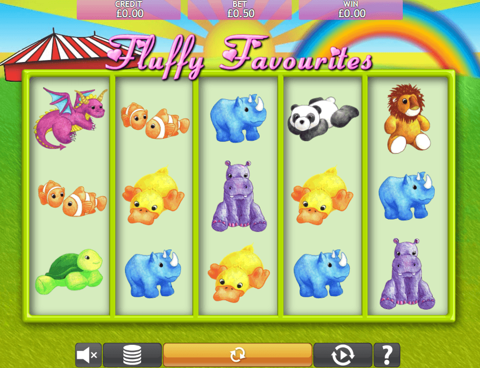 - The potential for big wins - Even though fluffy favorites is medium variance, it can still award the player 100x the total wager in the toy grab bonus round and a 5000x maximum line bet multiplier for 5 of the top symbol (purple hippo) with the pink elephant acting as a wild and doubling all wins
