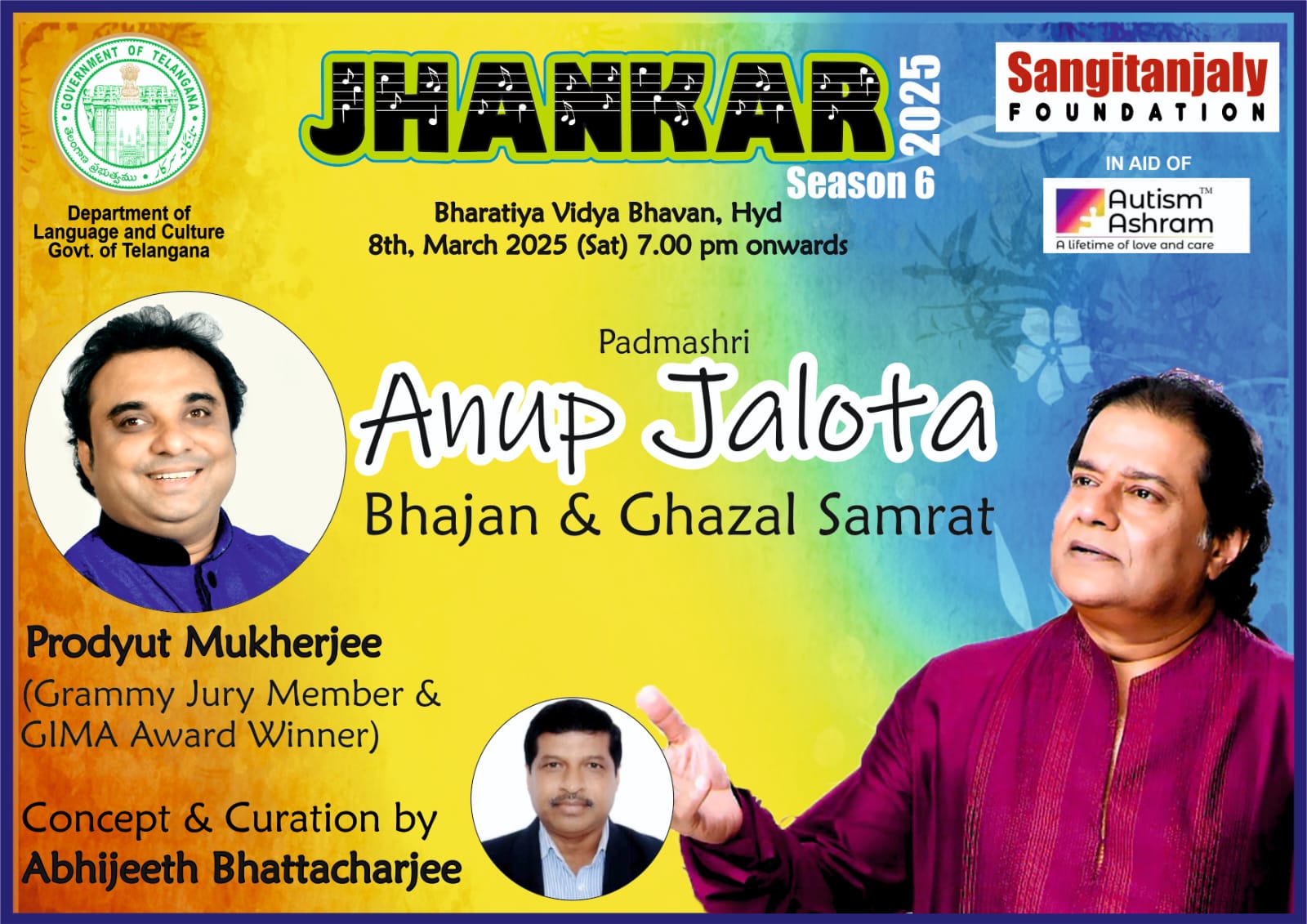 Jhankar 2025 – Season 6 featuring Anup Jalota will take place on March 8, 2025, at Bharatiya Vidya Bhavan,Ramkote Road, Basheerbagh, Hyderabad. Tickets will be available at Book My Show.
