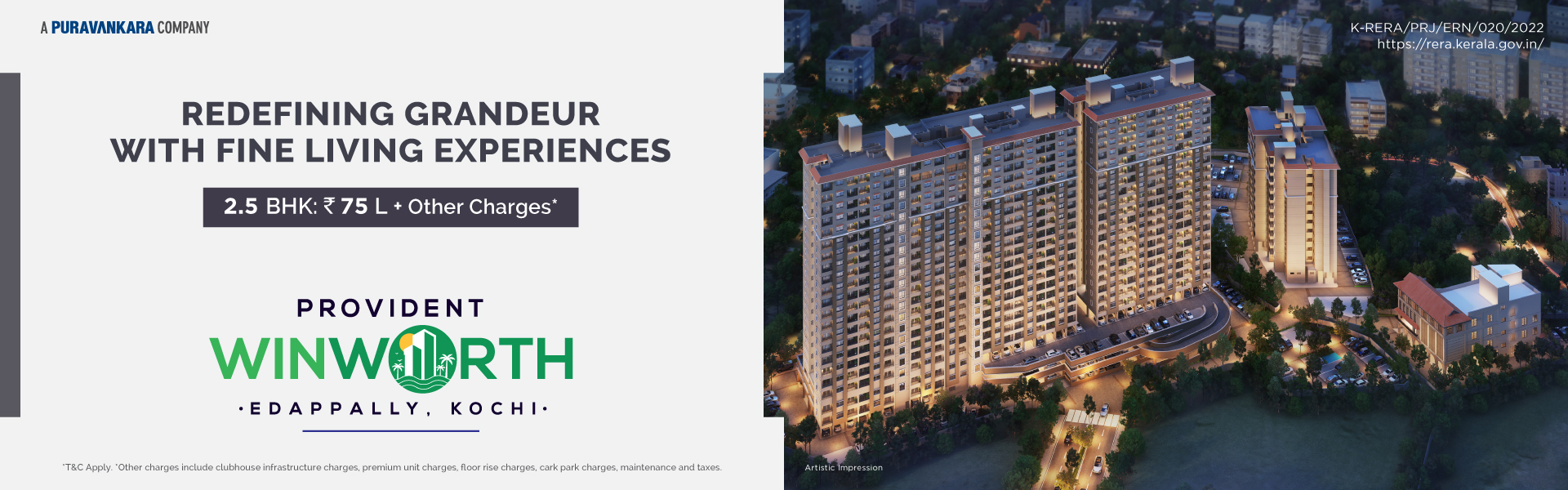 - Edappally Metro Station which is close to major landmarks such as Edappally Church and Lulu Mall is just a km away from Provident Winworth.