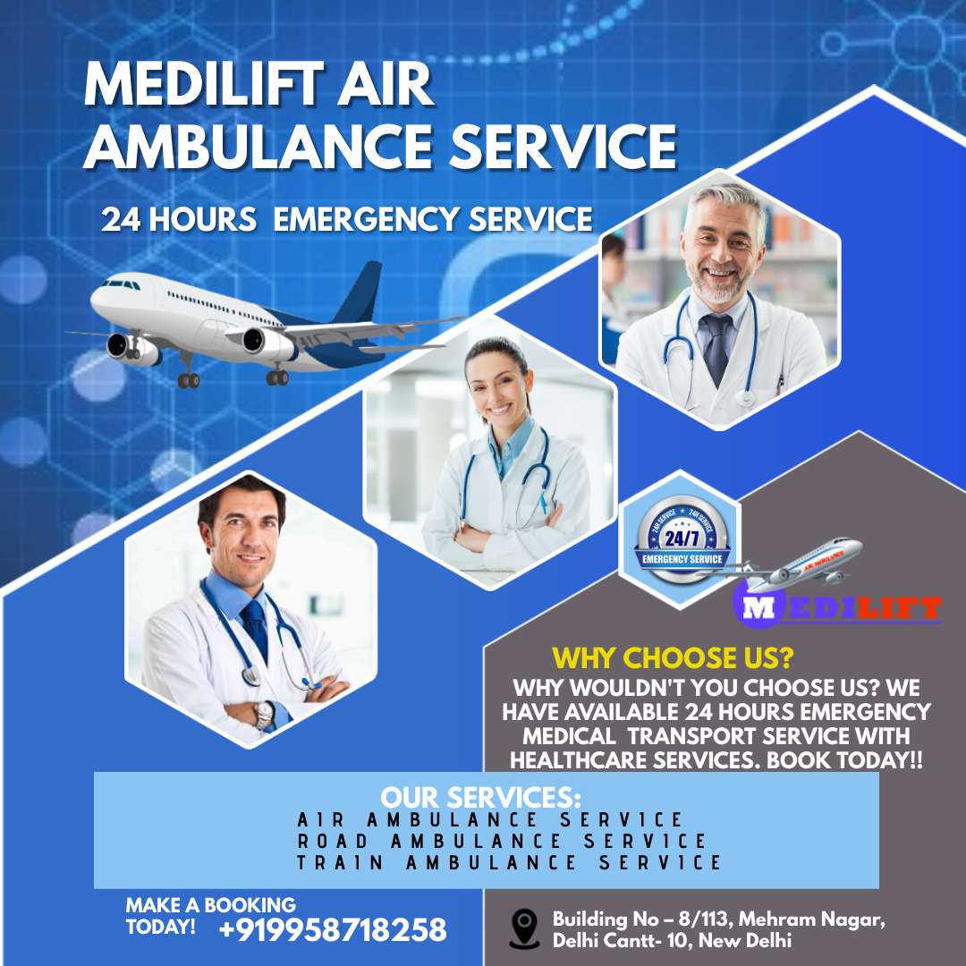 Patna, Bihar Oct 20, 2021 (Issuewire.com) - Curative commutation of critical patients involves life-threatening risks and complexity at each step of the transport mechanism. In this murky scenario, there are infinite doubts in minds of people opting for a medevac for their loved ones in pursuit of better treatment possibilities. All you can do is trust the Air Ambulance Services in Patna flourishing under Medilift Air Ambulance. We promise to deliver exceptional patient transportation service by rendering appropriate medical care at times of need. We work 24/7 to reach you at the earliest to fulfill your medical requirement urging for the best medical care. We work in close collaboration with doctors, hospital administrations, and our remedial staff to deliver the best commutation experience to patients.
