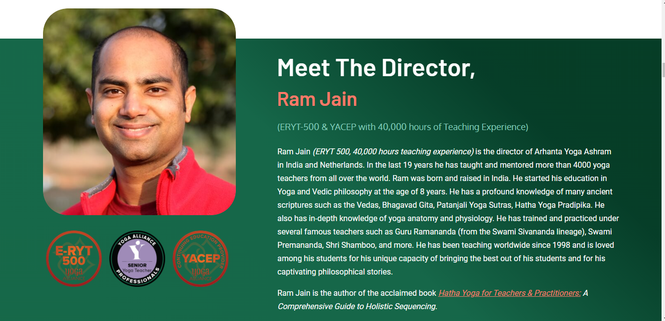 About the Ram Jain of Arhanta Yoga Ashram: Ram Jain is one of the founding fathers of the Arhanta Yoga Ashram. He is the one who made the Arhanta Yoga Ashram one of the most prominent yoga ashrams in the world. He is one of the best yoga instructors in the world who has dedicated his life to the progress of yoga and has worked hard to preach the teachings of peace through yoga.