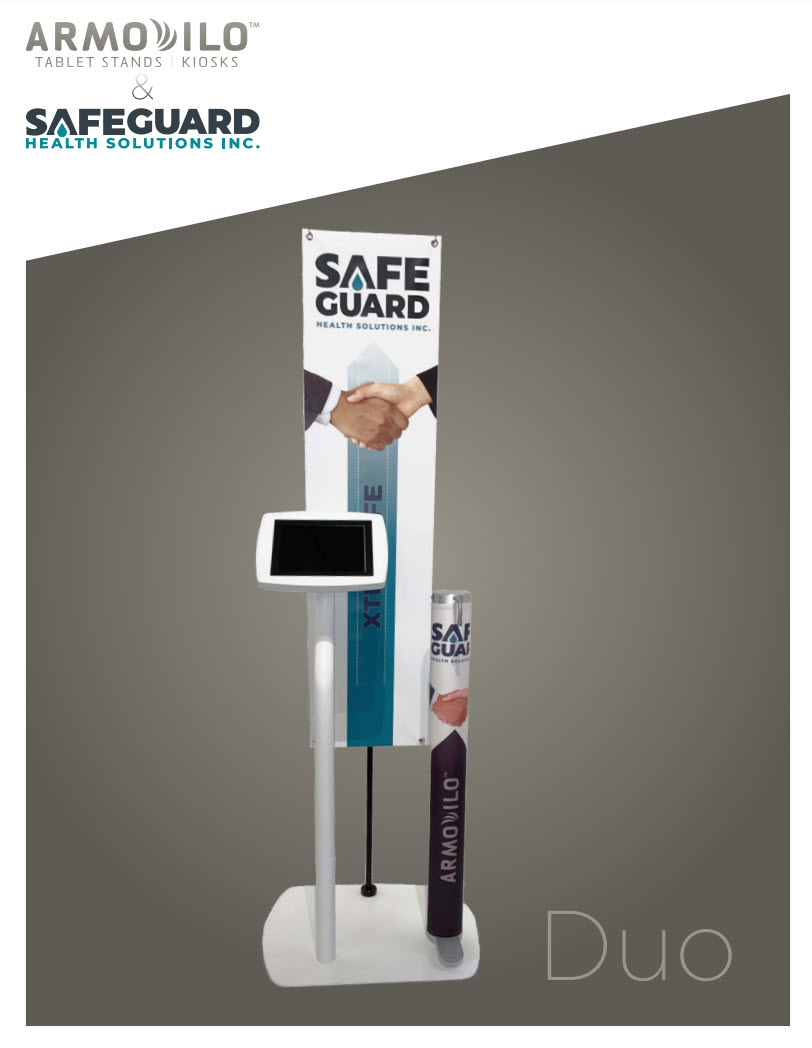The DUO, a fusion of Armodilo's renowned Floor Freestanding tablet Kiosk and SafeGuard Health Solutions' XtraSafe Hands-Free Sanitizer Dispenser, is set to redefine how businesses and institutions prioritize safety and enhance brand image in an ever-evolving world.