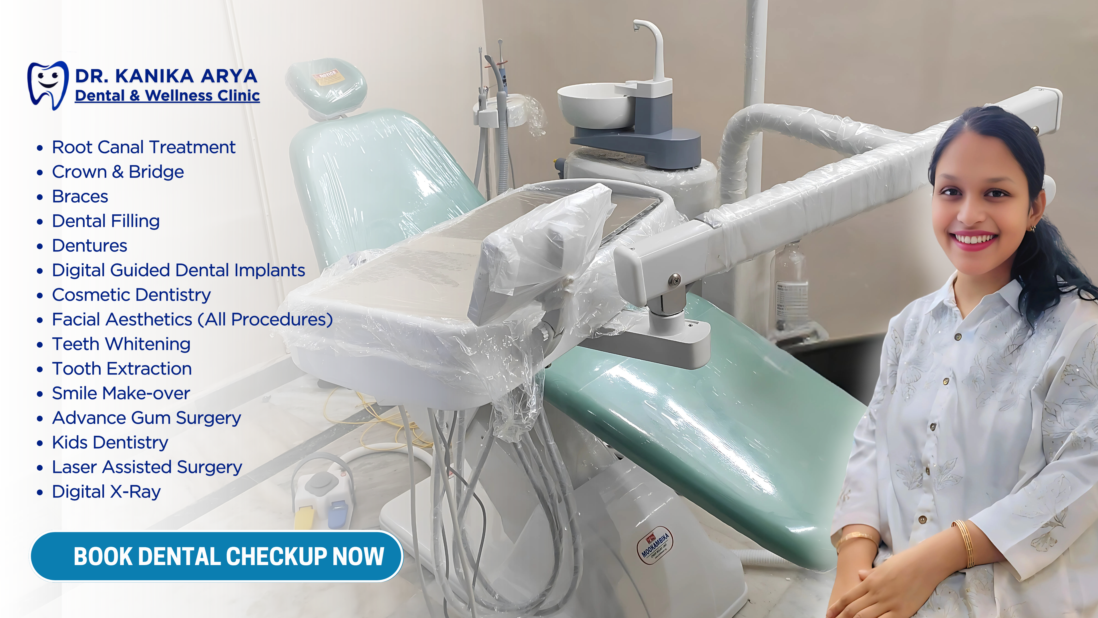 Arya Dental And Wellness Clinic is the best dental clinic in the area equipped with the latest technology and dental chair offering various dental treatments like Root Canal Treatment, Crown & Bridge, Braces, Dental Filling, Dentures, Digital Guided Dental Implants, Cosmetic Dentistry, Facial Aesthetics (All Procedures), Teeth Whitening, Tooth Extraction, Smile Make-over, Advance Gum Surgery, Kids Dentistry, Laser Assisted Surgery, Digital X-Ray and more.