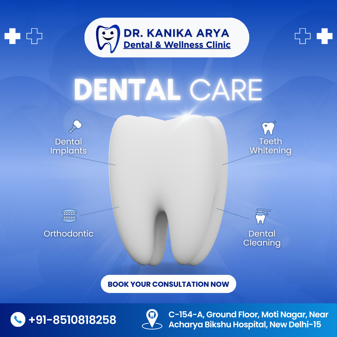 Dr. Kanika Arya and her team are committed to improving oral health in Moti Nagar, Delhi and the surrounding areas. The clinic aims to educate patients about the importance of good oral hygiene and provide them with good oral hygiene so they can maintain healthy smiles.