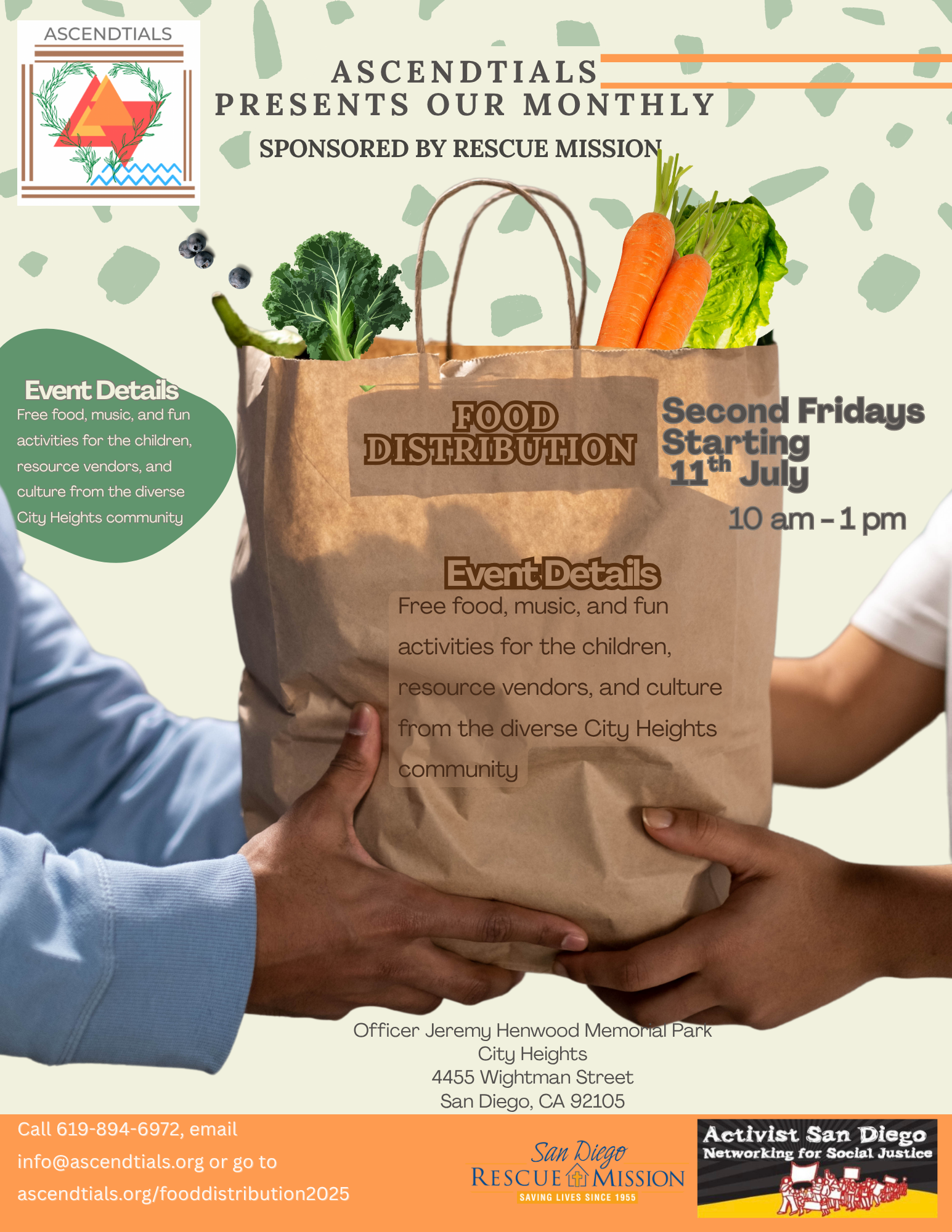 San Diego, California Jul 12, 2025 (Issuewire.com) - Imagine this: a welcoming space where community members come together to bag and share fresh, locally sourced food—with care, intention, and compassion. ASCENDtials is proud to present its monthly Food Distribution beginning Friday, July 11, 2025, from 10 AM to 1 PM at Officer Jeremy Henwood Memorial Park. This free monthly event is a vital part of ASCENDtials’ mission to promote food security, community support, and equity and access for underserved neighborhoods in City Heights.