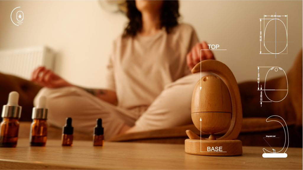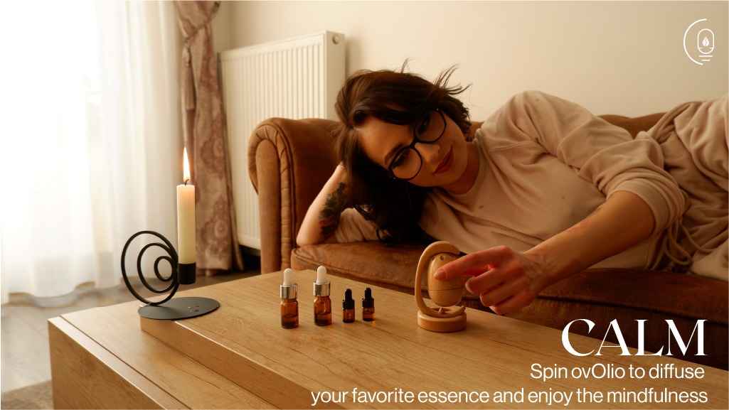 The inspiration for ovOlio came from nature, and the egg-shaped design symbolizes the core of emotions. The product was developed during the lockdown, when anxiety levels increased due to global events such as the pandemic, isolation, war, recession, and stress. The ovOlio Creator, Lorina B, stated, "We felt the need to return back to ourselves, disconnect from the screens and bad news, and reconnect to nature. And what better way to do that than to work with natural fibers and scents?"