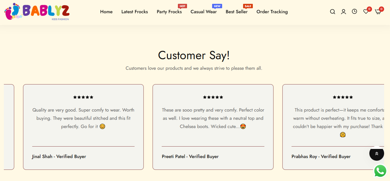Bablyz was created with a vision to redefine kids' fashion by blending comfort, quality, and style. The brand focuses on using premium fabrics that are gentle on children's sensitive skin while ensuring designs that are playful, chic, and practical for everyday wear. From casual outfits to festive attire, Bablyz has something for every occasion.
