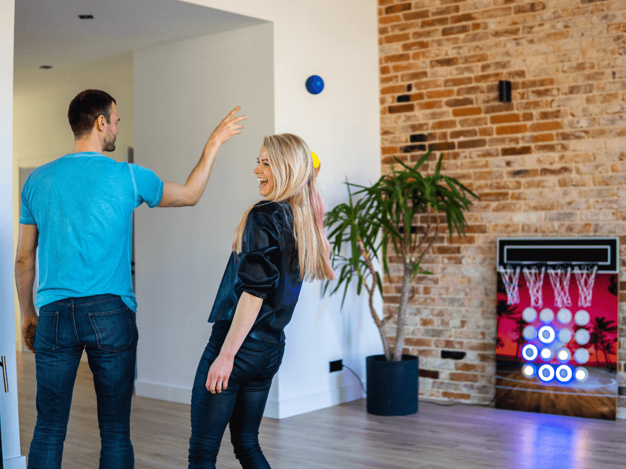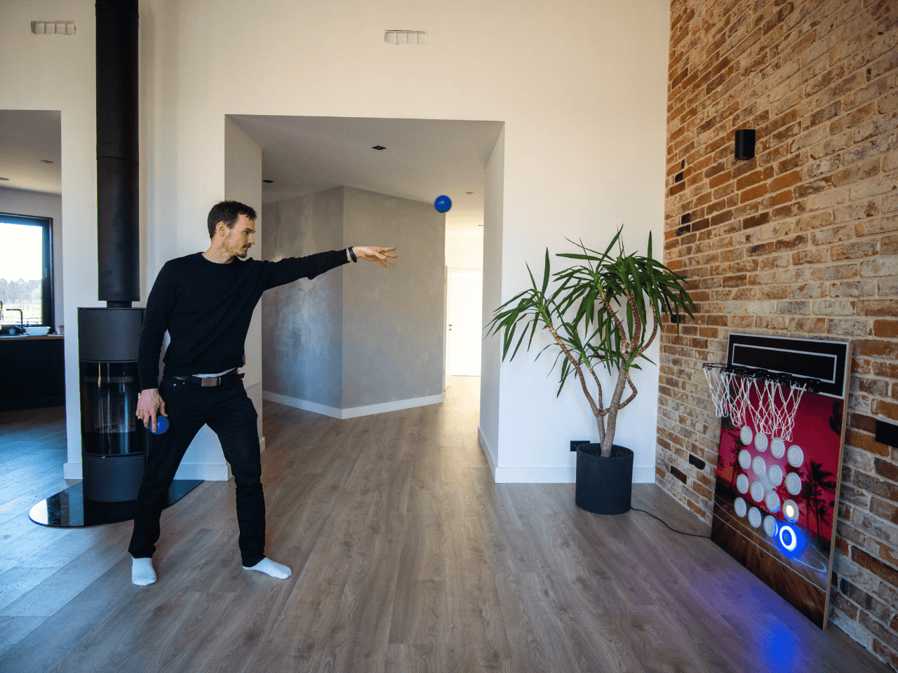THE3GAME Board is made from premium materials, including metal rims, two-color LED lights, a custom background image, two easy stick-on places on the back, and foam balls.
