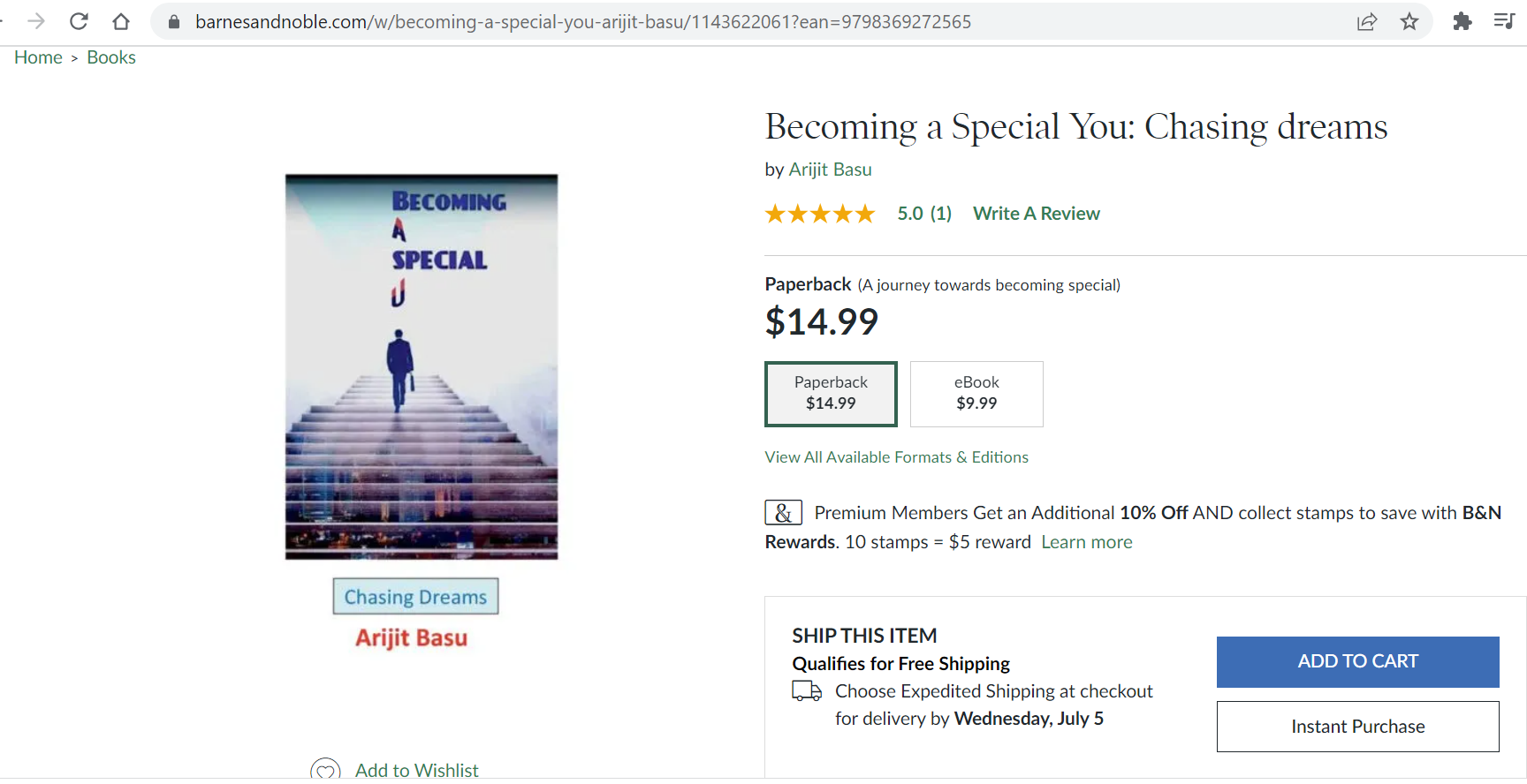 Memphis, Tennessee Jun 29, 2023 (Issuewire.com) - Arijit Basu, a man of many hats add another feather in his cap by penning the book “Becoming a Special You” which has been published by the famous publishing house Barnes and Noble. The book is available as E-book as well as in Paperback format. Good news, Becoming a Special You is now on sale on BN.com!