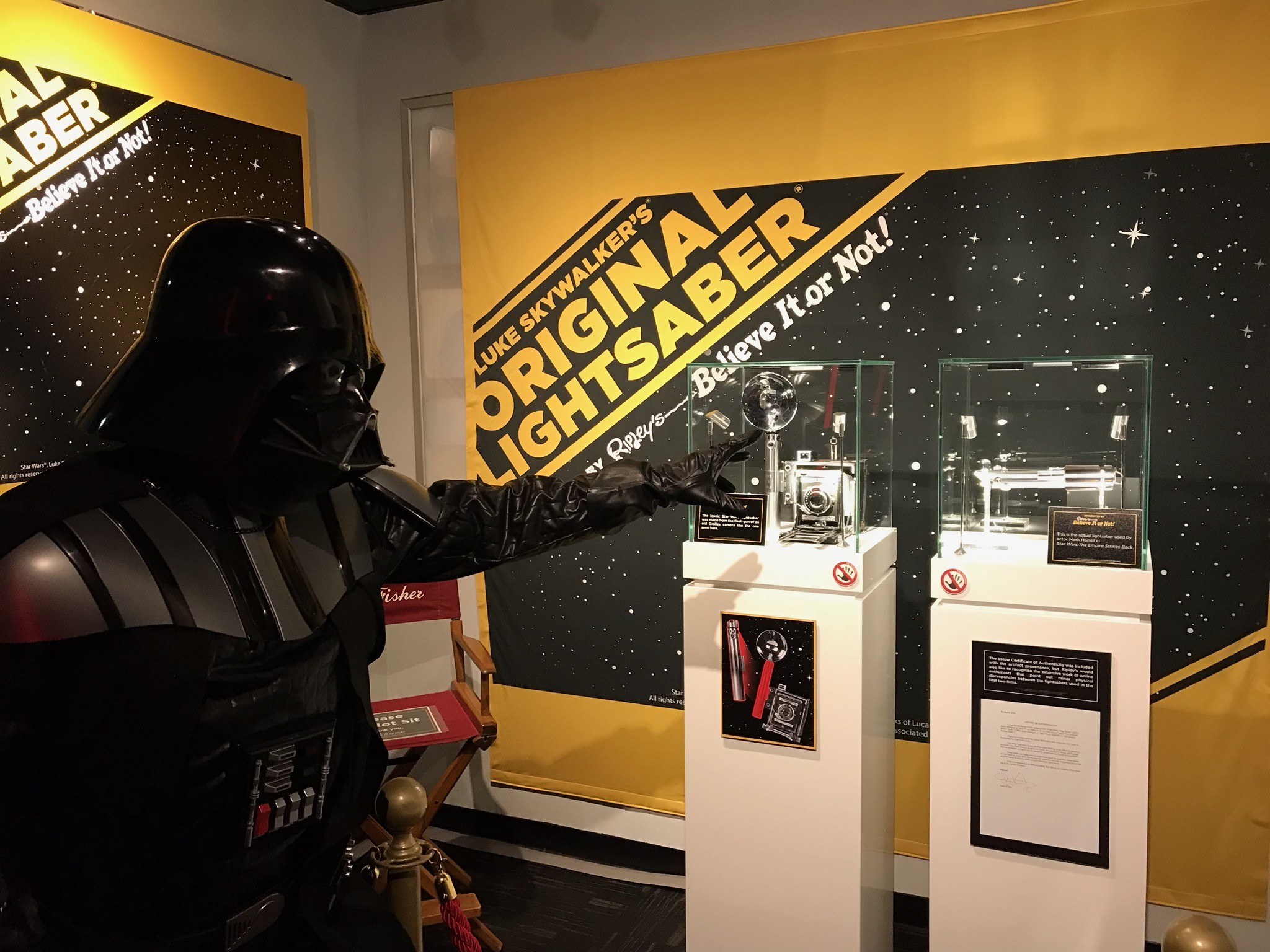 New York City, New York Oct 30, 2018 (Issuewire.com) - The Dark Side came to Times Square on Wednesday, October 24th as Star Wars enthusiast and Darth Vader tribute artist Will Weinand made a surprise appearance at Ripley’s Believe It Or Not! to visit an original Star Wars Lightsaber, the actual prop used by actor Mark Hamill, Luke Skywalker himself, in Star Wars: The Empire Strikes Back!