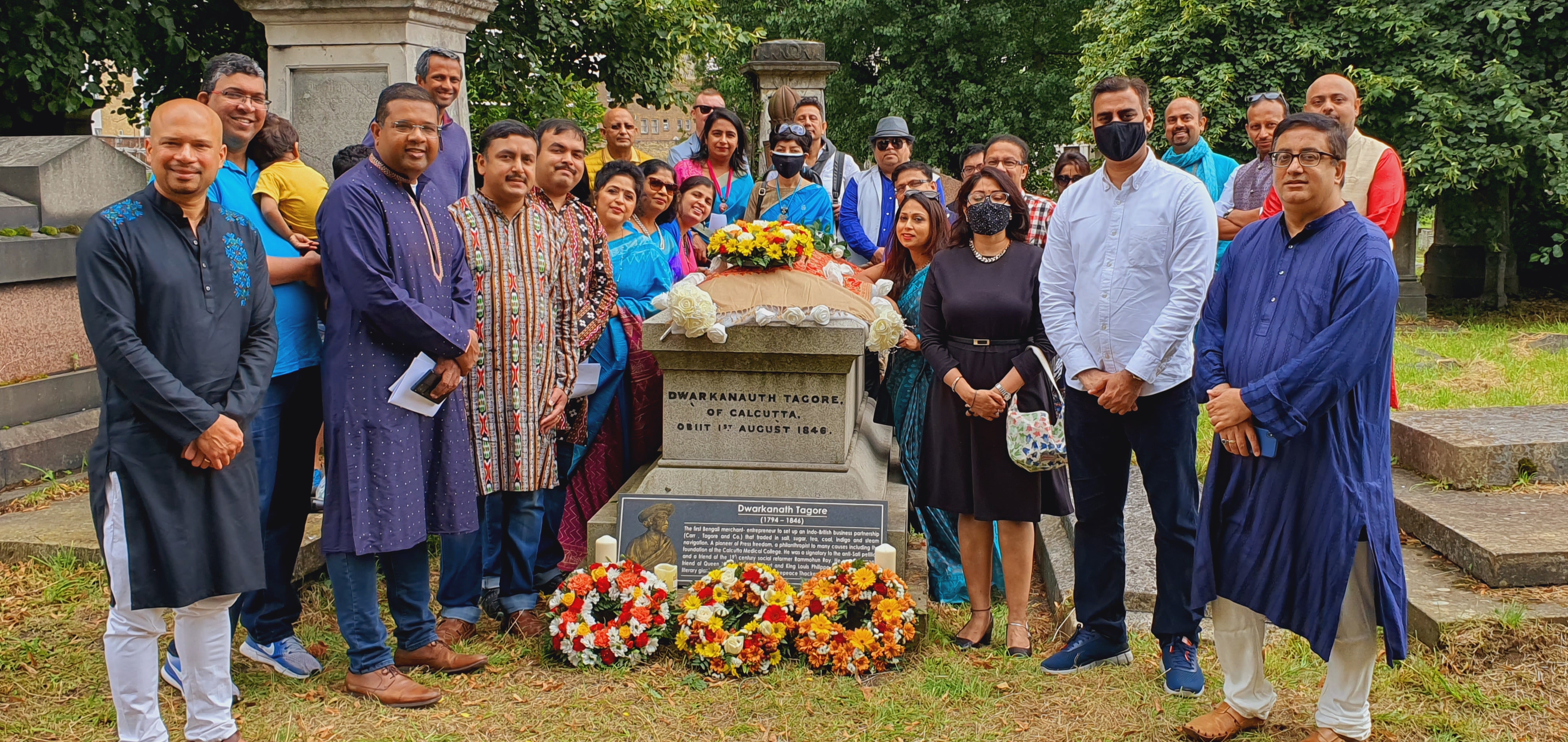 The month started with a commemoration at Kensal Green Cemetery in London where Prince Dwarakanath Tagore, an entrepreneur, a pioneer in Indo-British Trade and grandfather of Nobel laureate Rabindranath Tagore lies at rest. BHF has worked with cemetery authorities to clean the tombstone and restore its resting place and has been holding commemoration ceremonies since 2018. The commemoration was joined by people from all around the UK who gathered around the monument to Dwarkanath Tagore, where wreaths were placed around his tomb by Rohit Vadhwana, the First Secretary, High Commission of India in the UK, the descendants of the Tagore family and members of BHF. This was followed by a service at the Dissenters’ Chapel through songs and eulogies celebrating the remarkable life of Dwarkanath Tagore. Simultaneous celebrations were held in India at Raniganj, where Dwarkanath Tagore set the foundations of his business empire.