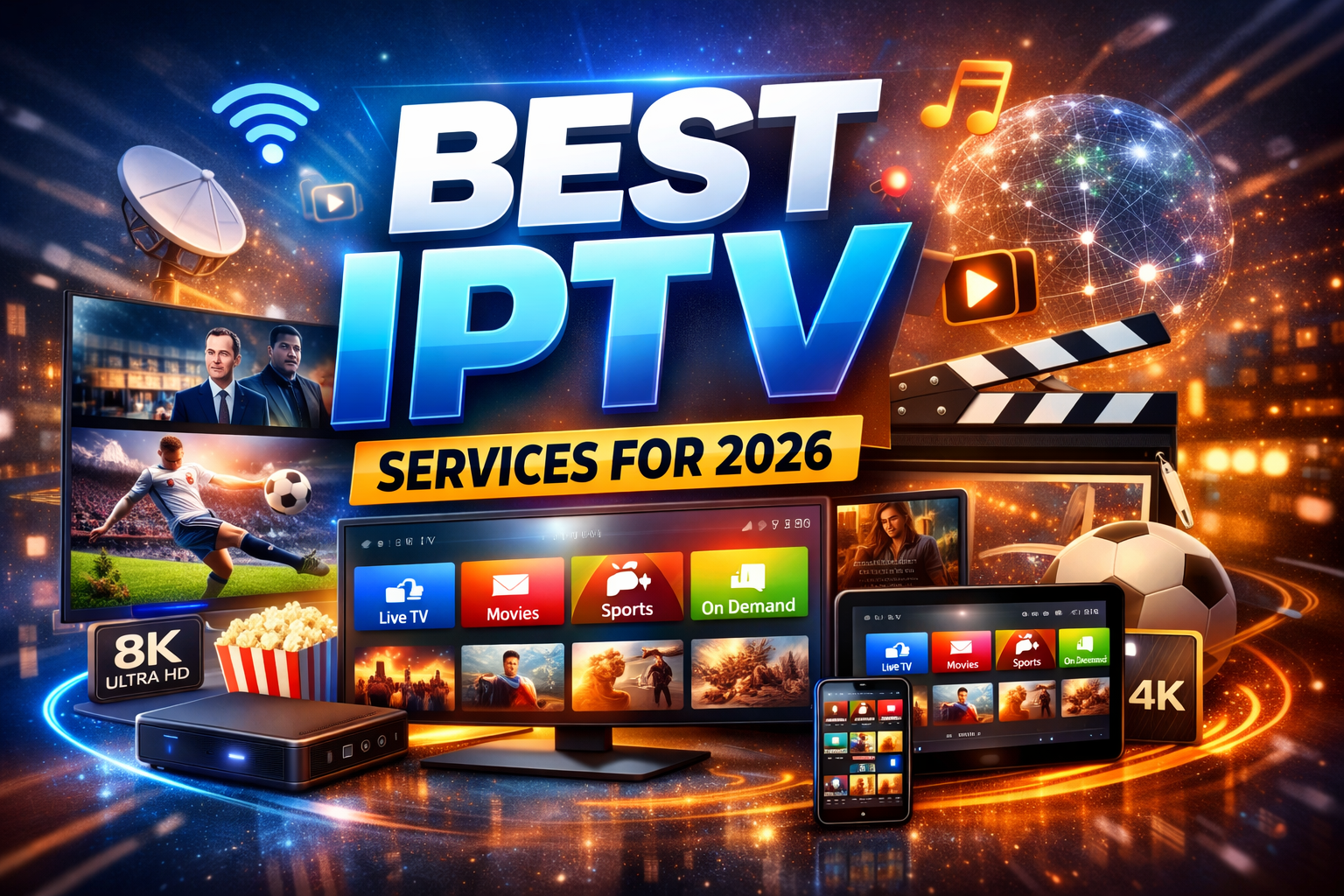 The best IPTV services support devices like Android, iOS, Smart TVs, Firestick, and PCs.