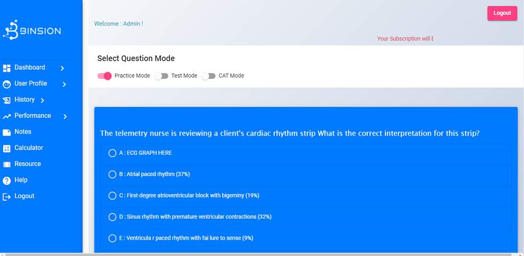 The test will automatically end if the candidate passes the exam or time-lapsed or if the computer cannot decide the ability of the candidate. It has a 5-hour exam with 145 questions and 6 hours exam with 265 questions.BINSION is a great app very low priced for the facility. Even its CAT Dashboard looks similar to the Pearson Vue exam dashboard. BINSION has recently launched the NCLEX RN® exam preparation. It is such a brilliant application thanks to Mr.Narendran.