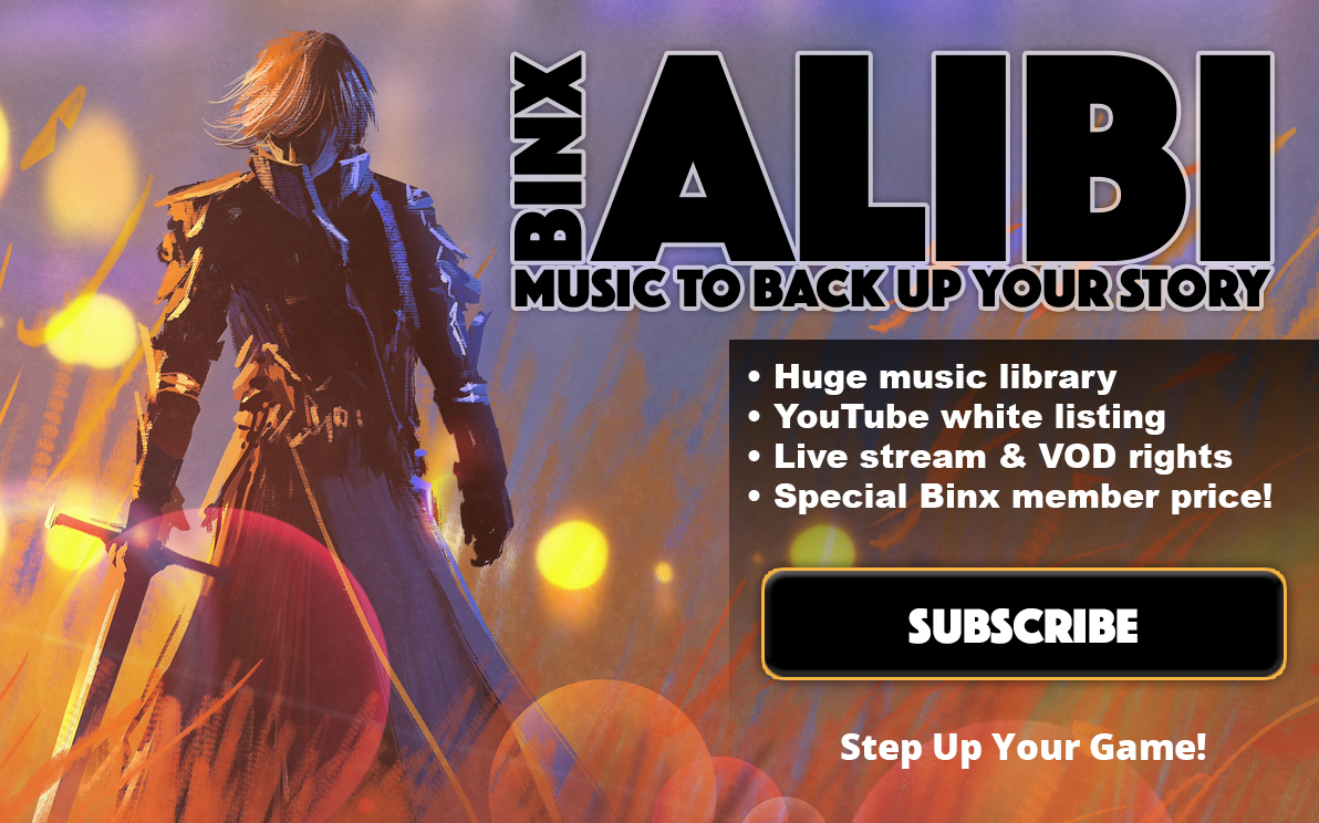 “Robust audio options have always helped Streamers present higher and higher levels of professional streams to the web. Yet, there is a nagging fear of takedown or bans based on the use of copyright protected tracks,” says J. A. Ames, CEO of Binx.tv; “BinxAlibi steps into the breach and solves the problem. Ensuring that any service subscriber gets quality, stream-ready music options. Letting Streamers focus, exclusively, on their gaming, networking and brand building.”