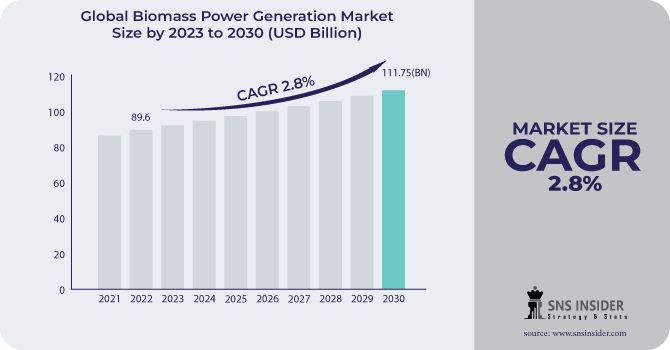 Based on the SNS Insider report, the Biomass Power Generation Market reached a valuation of USD 89.6 billion in 2022 and is projected to expand to USD 111.75 billion by 2030, exhibiting a compound annual growth rate (CAGR) of 2.8% during the forecast period spanning from 2023 to 2030.