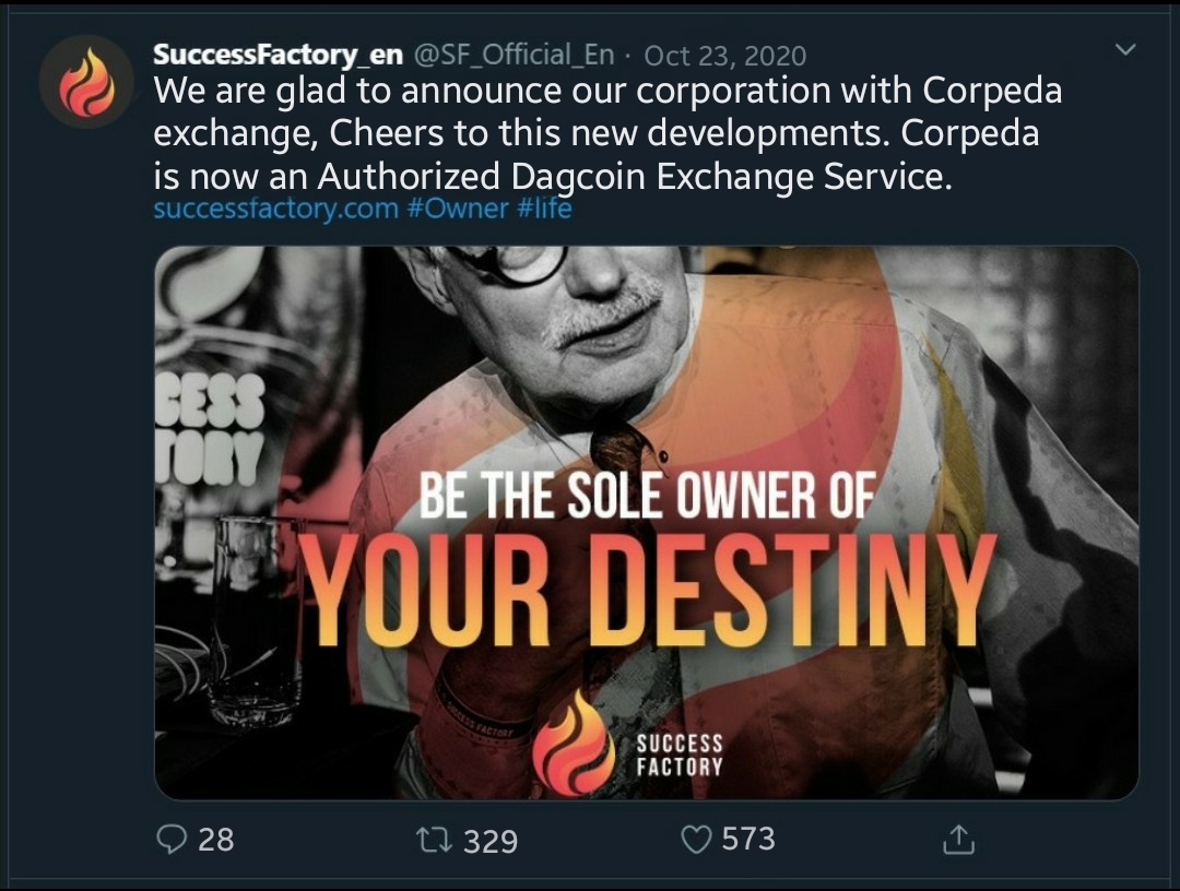 BAD NEWS: They are only Looking out for Investors with at least two Years of Investing with Successfactory owning a Minimum amount of Hundred Thousand (100,000) Dagcoins as free assets for sale.