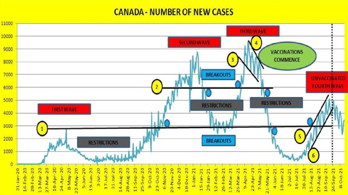 Federal, provincial, and territorial levels of government are invited to engage Boomslang Analytics to obtain their own historic new and active Covid-19 case analysis; AT NO COST. These charts, along with the documented commentary, demonstrate both visually and qualitatively, the importance of momentum indicator usage in Covid-19 new and active case projections, the subsequent healthcare system impact, and public health measure adoption policy.