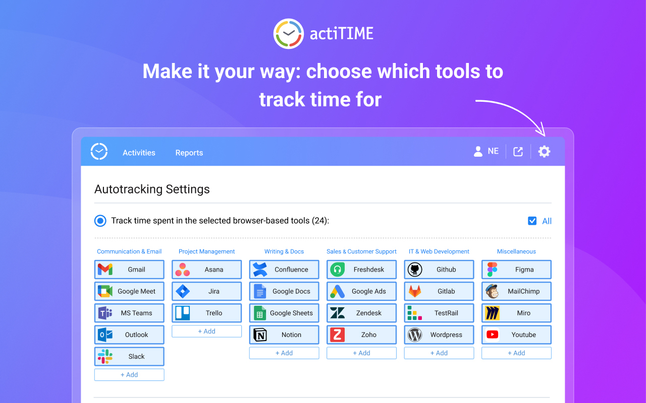 With its customizable settings, the Time Management Assistant provides a flexible approach to the time-tracking process. Users have the option to track time for all the web-based tools they visit throughout the day or select a range of tools and categorize them by different types of activities for greater convenience and better organization.