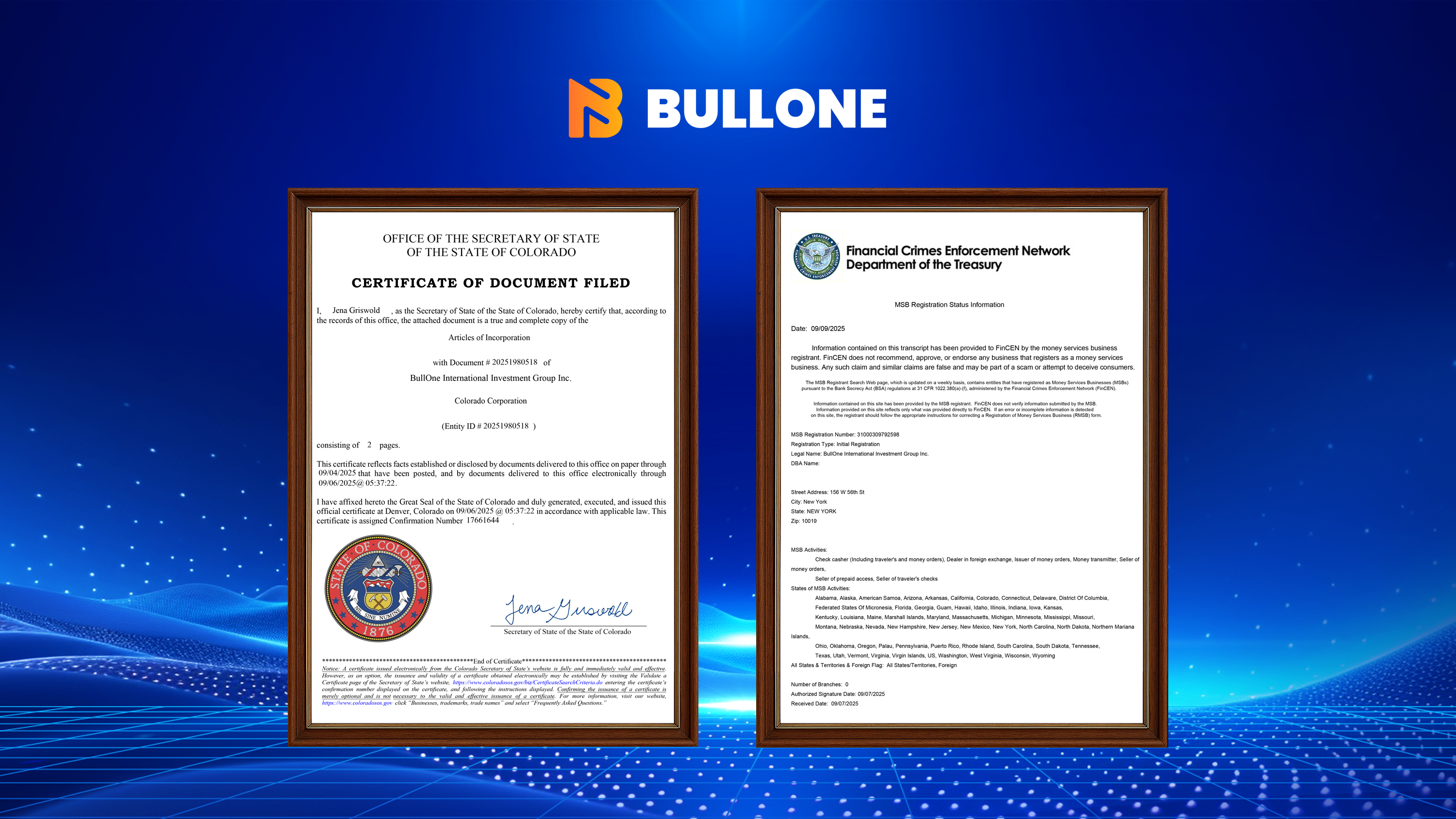 Barrow, Alaska Oct 22, 2025 (Issuewire.com) - A new powerhouse has entered the American fintech and investment sector. BullOne International Investment Group Inc. announced that it has officially completed U.S. registration and obtained its Money Services Business (MSB) license from FinCEN, marking its full inclusion in the international financial compliance framework and setting a solid foundation for its global expansion.