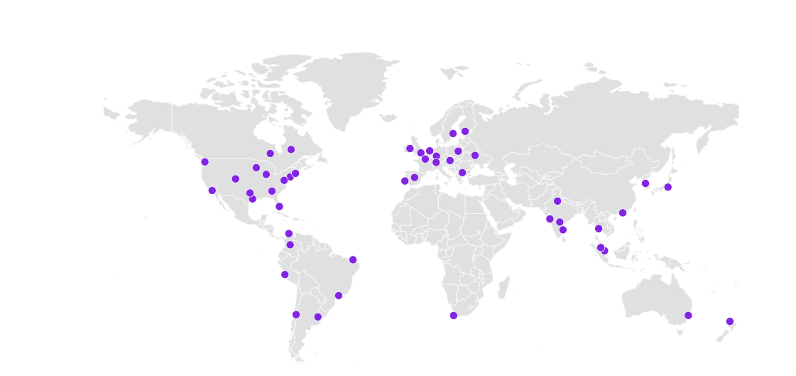 BVR Cloud Currently has CDN Locations In More than 100 Locations Worldwide. Currently, Its Opened New CDN Regions In Melbourne, Perth, Sofia, Kyiv. Currently, BVR CLOUD Has More CDN Regions Than Even Akamai, Amazon Cloudfront, etc. BVR CLOUD Has a capacity of more than 200Tbps Worldwide.