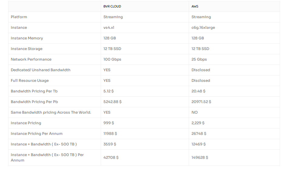 BVR CLOUD Is A Top Alternative to Amazon Web Services, Microsoft Azure & Google Cloud. Currently, BVR CLOUD Saves Up to 70% to End Users. In 2021 Many Startups & Enterprises Migrated from Aws, Azure, GCP to BVR CLOUD. Even Linode & Digital Ocean are unable to Match the Pricing of BVR CLOUD.