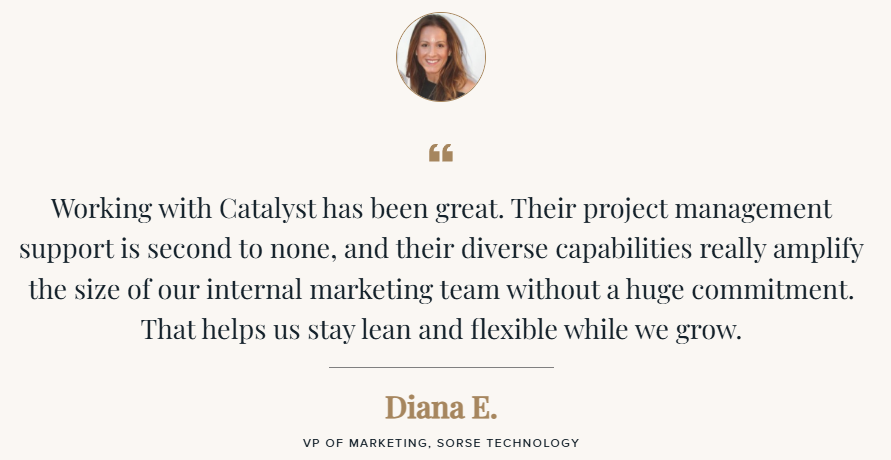 Through its integrated marketing model, Catalyst provides clients with access to a full-stack marketing team encompassing brand strategy, content creation, SEO, paid media, web optimization, and performance analytics at a cost comparable to hiring a single in-house marketer. This approach allows marketing leaders to eliminate operational gaps while maintaining agility and control.