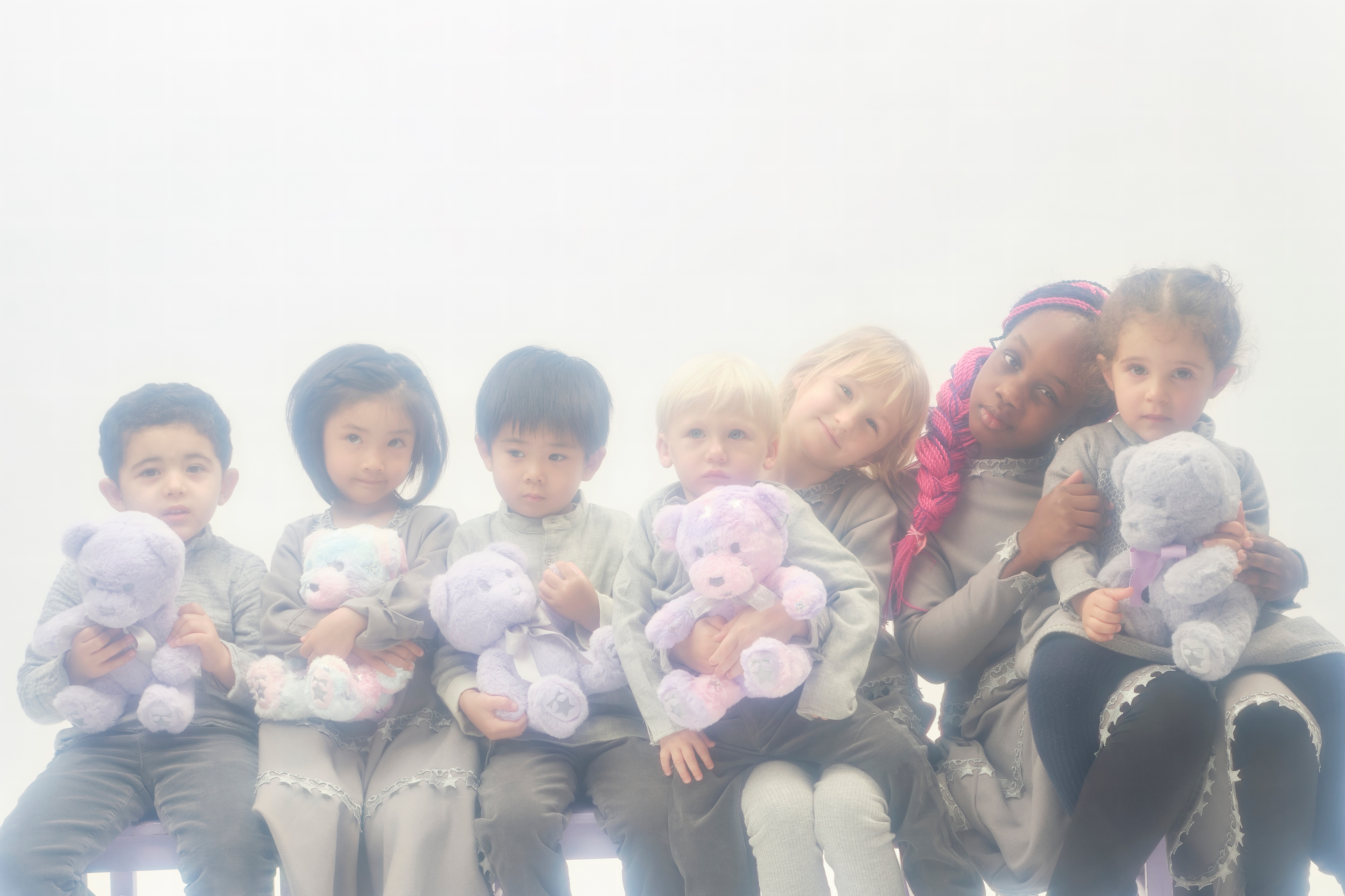 ・10th Anniversary Marble Sorbet Stuffed Bears with aurora star and silver ribbon details