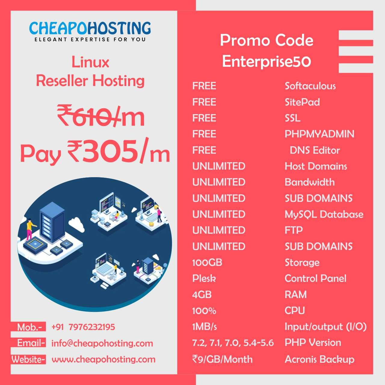 Today Cheapohosting has announced their biggest Summer Bonanza Sale to offer a Flat 80% Discount on Linux Shared Hosting and Linux Reseller Hosting, new customers can use the promo code Enterprise80 and avail their 80% discount from May 1st onwards. Furthermore, they are also offering a Flat 50% Discount currently on Linux Shared Hosting and Linux Reseller Hosting, the promo code for this offer is Enterprise50. With all this they are gaining the trust of their clients by providing FREE Linux Shared Hosting for 3 Months, the plan includes 1 Host Domain, 1 GB Storage, Unlimited Bandwidth with Free Softaculous, SitePad, and SSL Certificate.