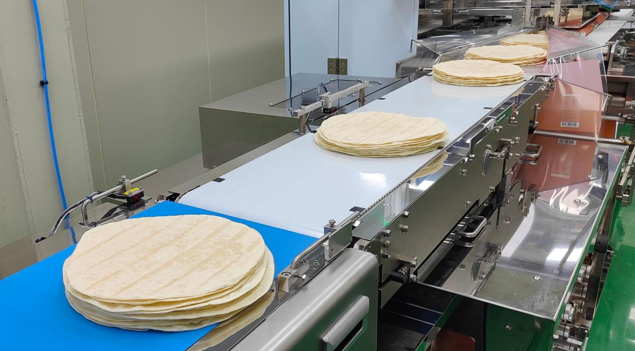 Through real-time thickness calibration, operators can adjust tortilla diameter and thickness without mechanical replacement. This flexibility enables a single line to switch efficiently between 6-inch wraps, 8-inch tortillas, 10-inch tortillas and 12-inch flatbreads, a capability increasingly valued by co-manufacturers serving multiple brand clients.