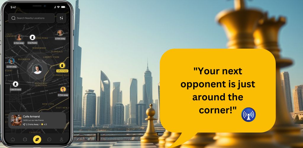 Find Local Opponents: Uses geolocation to match players nearby based on skill level, allowing games to be scheduled at cafes, parks, chess clubs, or any public space.